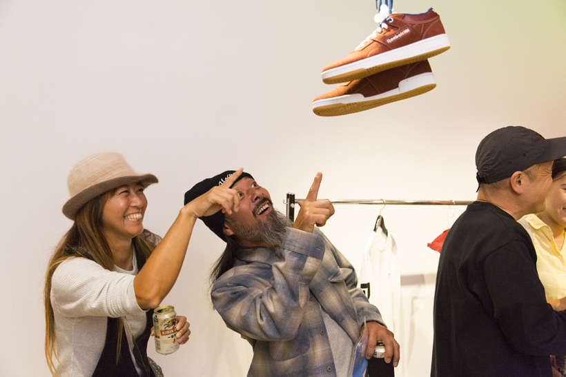当日はアイテムの販売を始め、コラボシューズをモチーフにした写真の展示やプロモビデオを上映。
