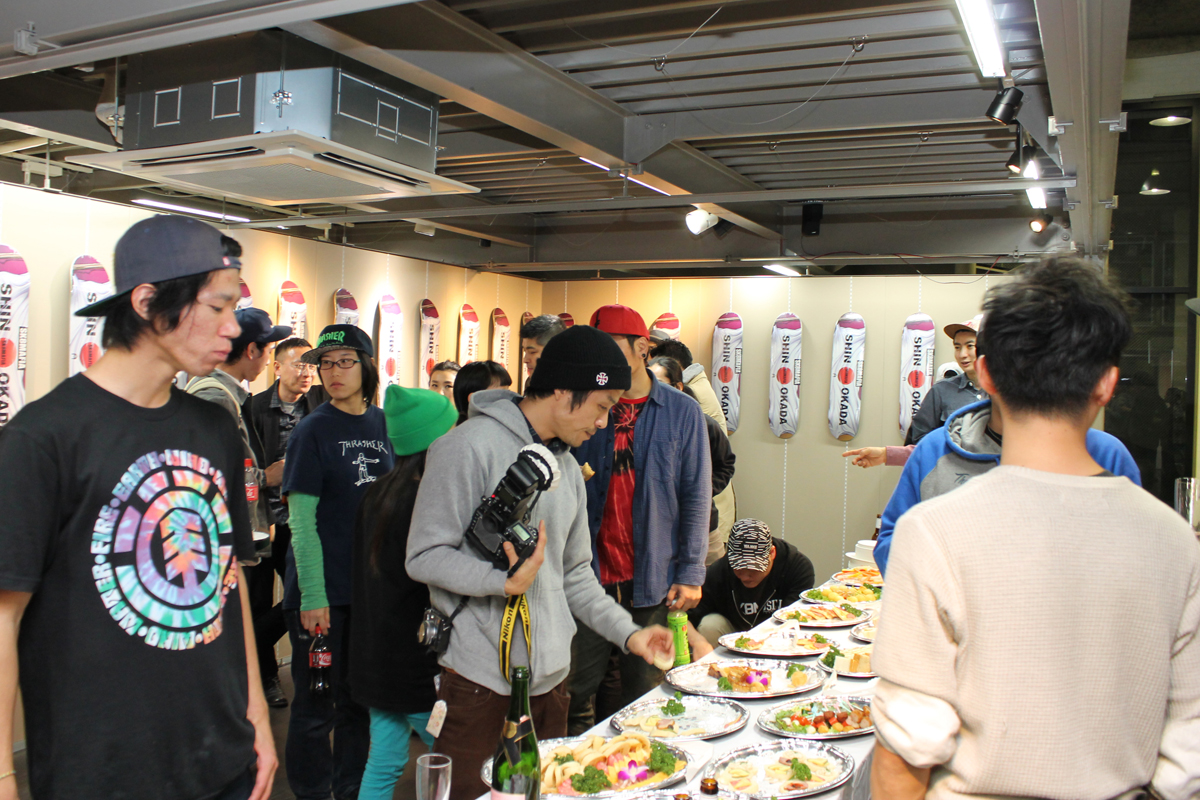 ウェス・クレマーが在籍していることで知られるサンディエゴ発のデッキカンパニーのSK8mafiaから岡田 晋のゲストモデルが発売されることに。そしてその発売を記念したリリースパーティが2月28日(金)にSonik Distributionにて開催された。会場では、主役である岡田 晋の音頭による乾杯が行われたほか、イベント当日に誕生日を迎えたSonikスタッフのバースデーケーキが用意されるなど、アットホームな雰囲気でのパーティとなった。