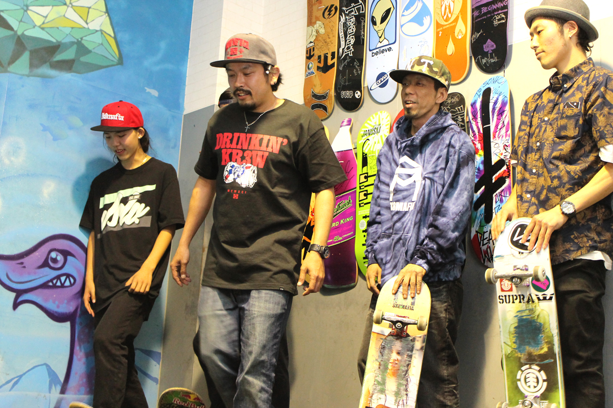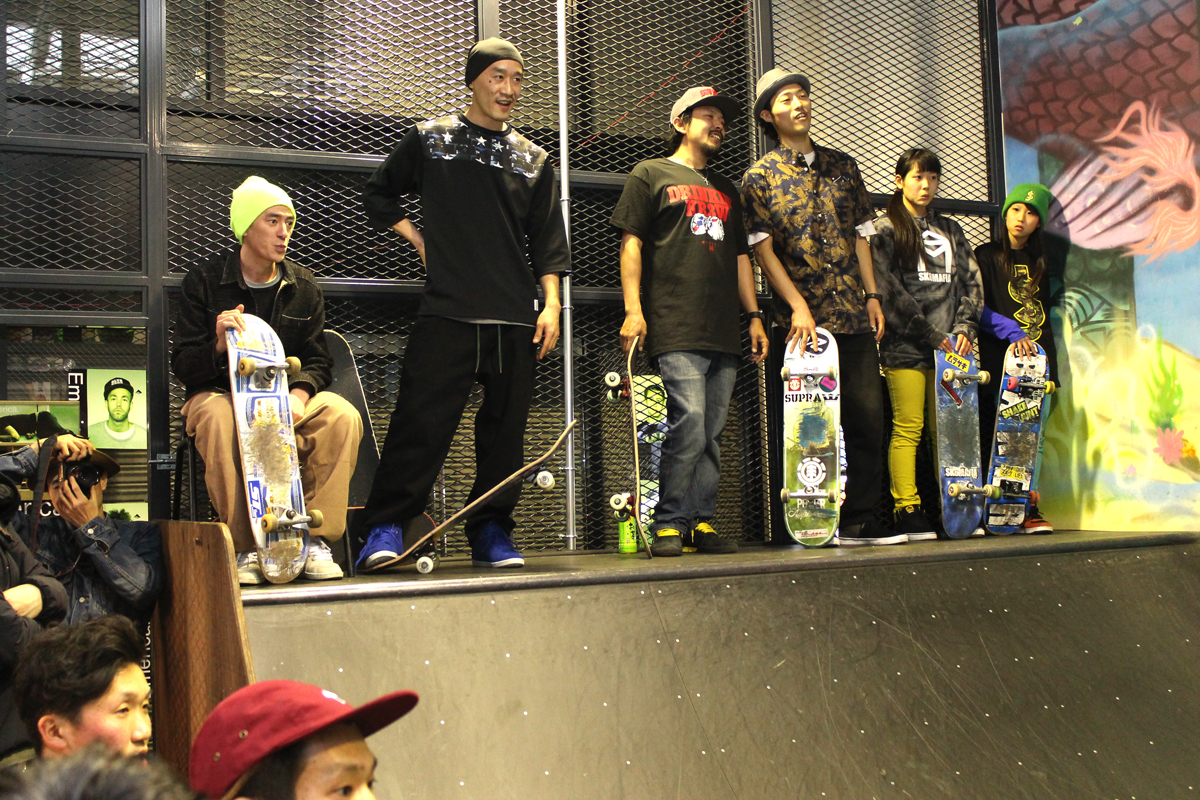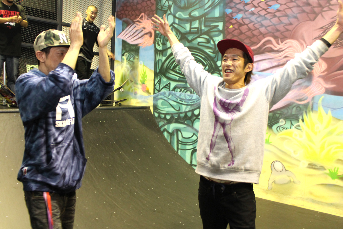 そして、そんな雰囲気が一変したのは、Sonik内に設置されたミニランプでのコンテストが始まってから。米坂淳之介、吉田 徹、立本和樹、大矢尚孝、館山憲次郎、阿部直央、ブチ、池田幸太、瀬尻 稜などといった豪華スケーターによるミニランプでのジャムセッションが繰り広げられ、会場はヒートアップ。結果、会場を一番沸かせた池田幸太が優勝賞金3万円をもぎ取った。