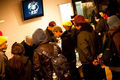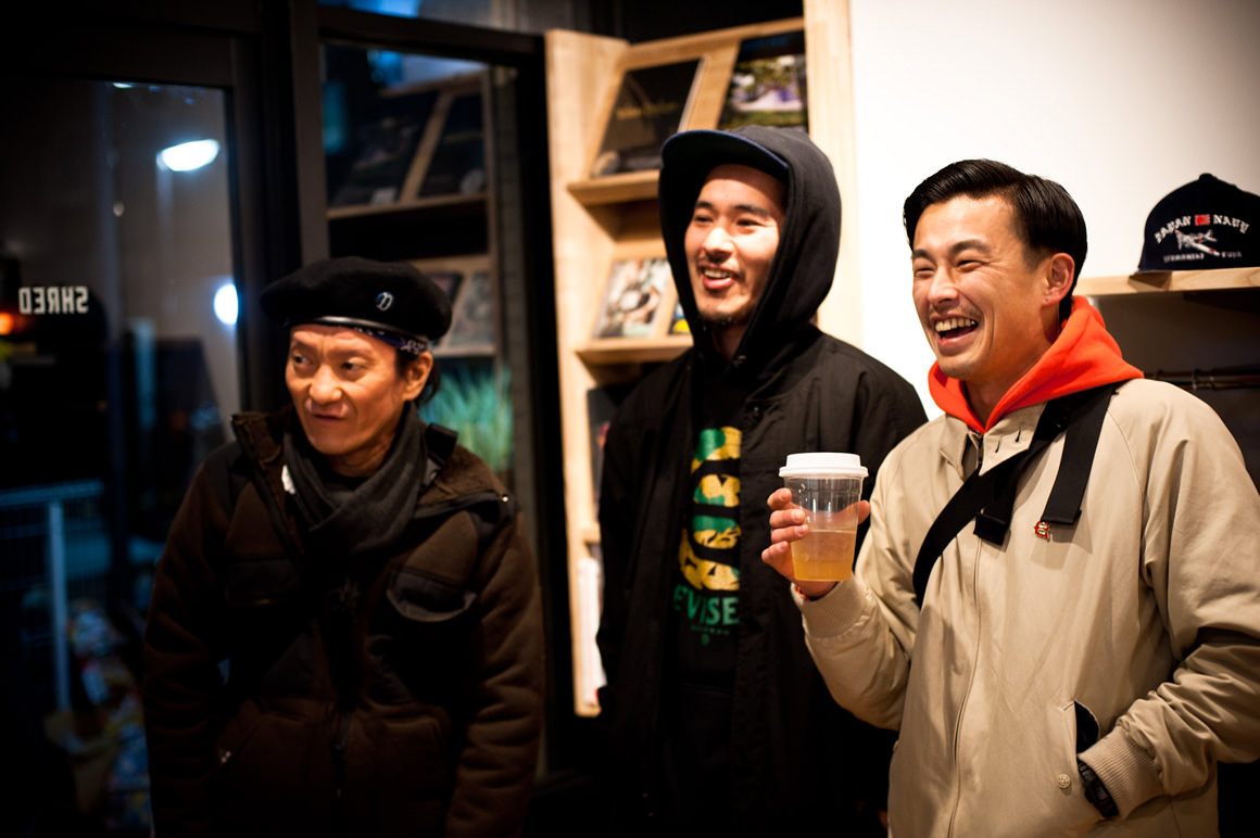 オープニングレセプションではNINJA LAGERのフリービアーが振る舞われ、全国各地からさまざまなジャンルの人たちが集まり大いに盛り上がっていた。