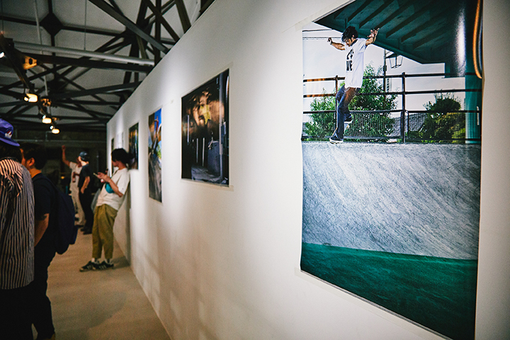 創刊からの10年を象徴するさまざまな写真が展示された会場内には多くのスケーターが集合。