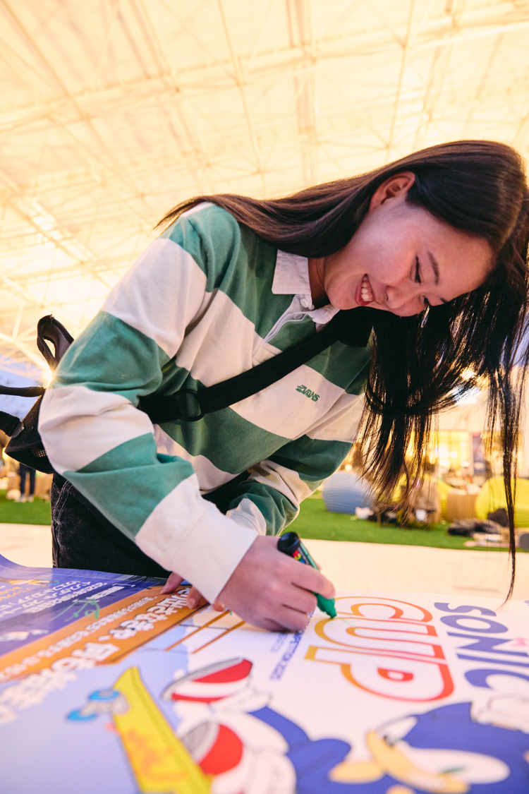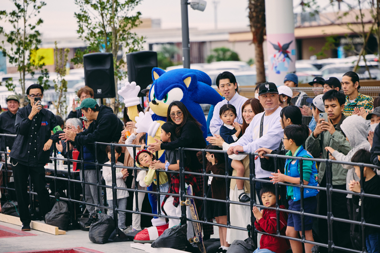 ソニック・ザ・ヘッジホッグのサプライズ登場には、スケートボードファンはもちろん会場に遊びにきていた人々のハートを鷲掴みにしていた。
