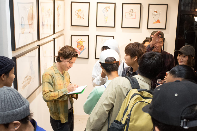 当日は悪天候ながらも多くのスケーターが来場し、スパンキーのアートの世界を満喫。長い列をなすファンの写真撮影やサイン攻めに丁寧に対応する場面も。