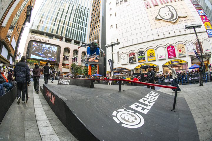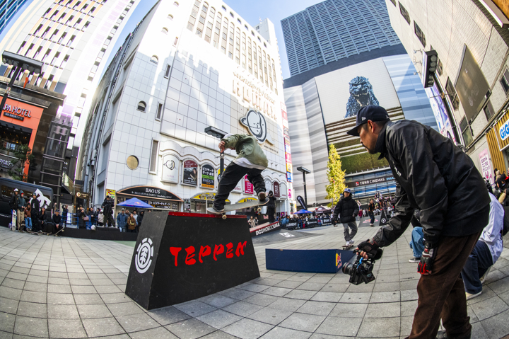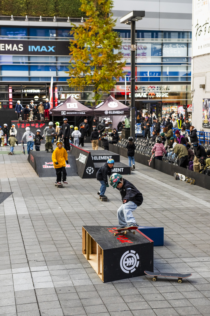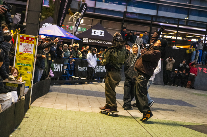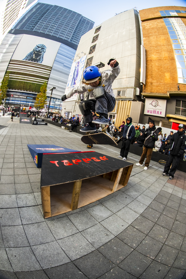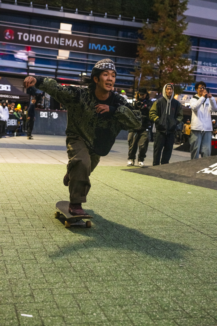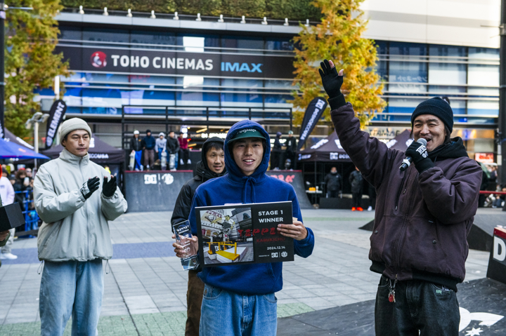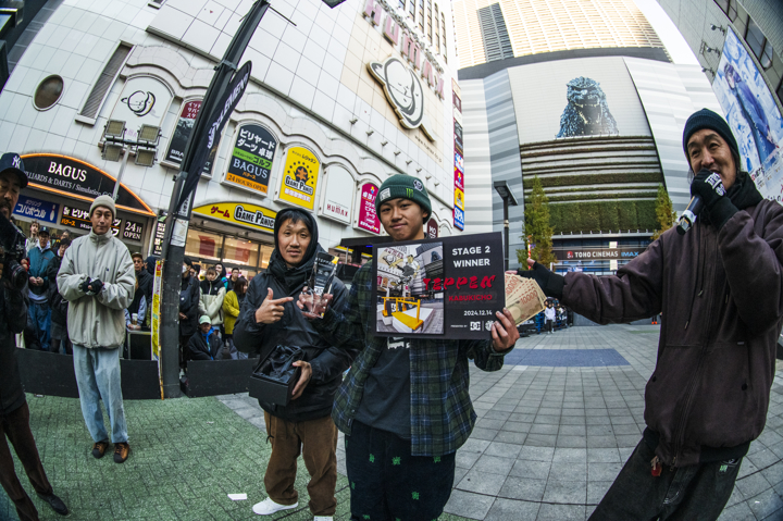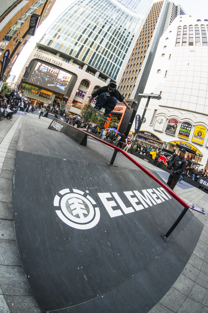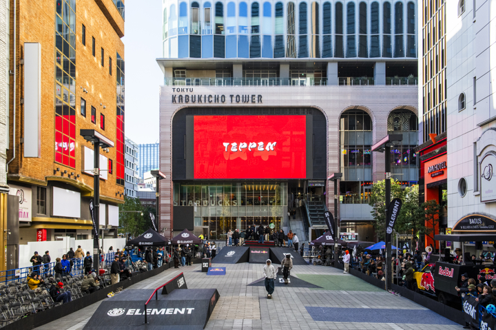 DCとElementによるスケートの祭典TEPPENが12月14日(土)に新宿・歌舞伎町で開催された。会場は行き場を失った通称「トー横キッズ」がかつてたむろしていた歌舞伎町シネシティ広場。大阪とSNS、そして当日の予選を勝ち抜いた一般スケーター、さらに豪華な招待スケーターによって繰り広げられるバトルはStage 01〜03。バンクとレッジを組み合わせたStage01では柿谷季輝がウォーリーでセクションを全越えしてMVPを獲得。続いてステア、バンク、レールから成るStage 02ではバンクtoバンクでのキックフリップバック3を決めた佐々木音憧、さらにレールでSs 50-50のバンクインを決めた瀬尻 稜の2名がMVP。バンクとクオーターパイプでトップのレッジを攻める最終ステージではT4がバックテールストールからのBs180アウトでMVP。会場のテンションもMAXに達したタイミングでコースを手掛けたMBM Parkbuildersの木村会長が登場し、Fsロケットブラントを決めた鎧 碧斗がMBM賞をゲット。本戦後は一般参加のベストトリックが男女でそれぞれ行われ、第3回目のTEPPENが終了。晴天ながらもビルの谷間ということで日差しがなく、冷たいビル風が吹きつける環境ながらも繰り広げられたセッションは激アツ。また来年の開催をお楽しみに!!