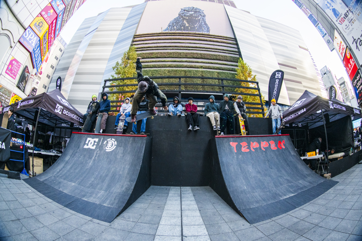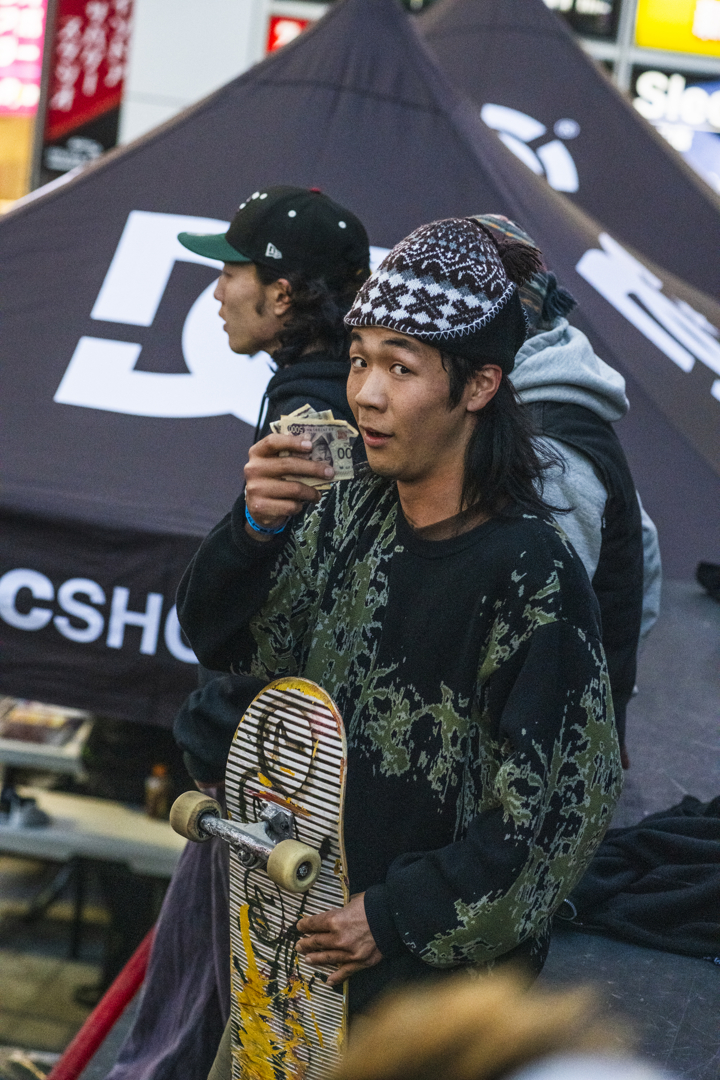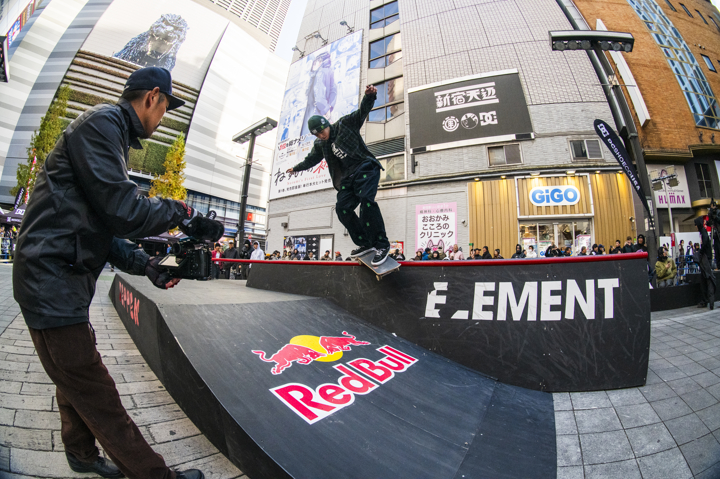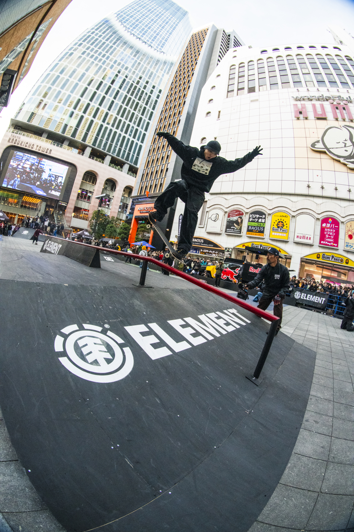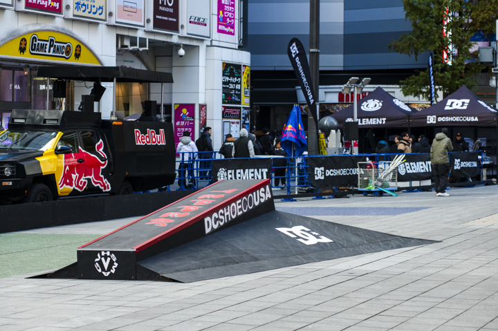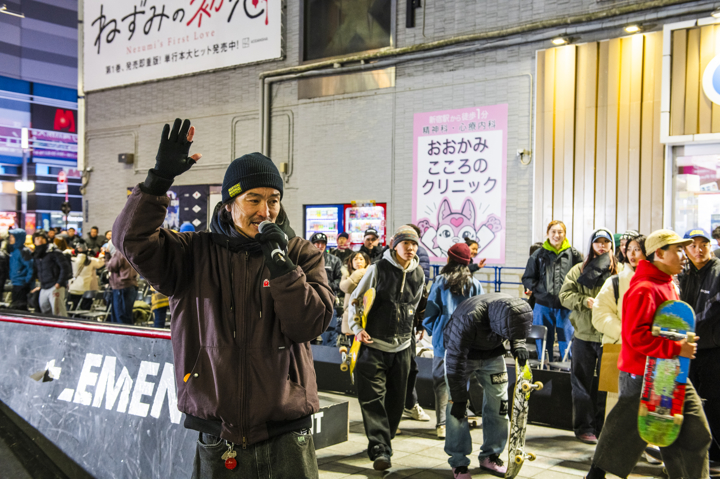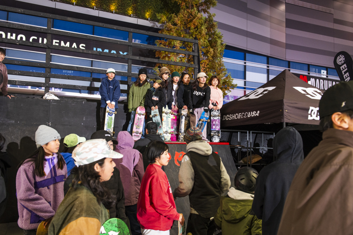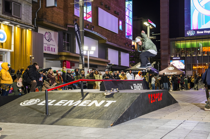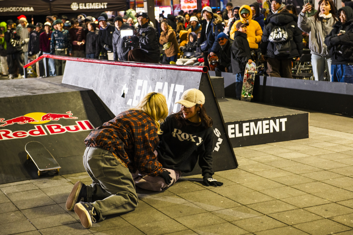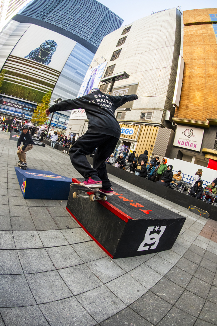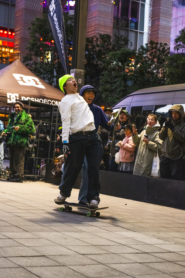 DCとElementによるスケートの祭典TEPPENが12月14日(土)に新宿・歌舞伎町で開催された。会場は行き場を失った通称「トー横キッズ」がかつてたむろしていた歌舞伎町シネシティ広場。大阪とSNS、そして当日の予選を勝ち抜いた一般スケーター、さらに豪華な招待スケーターによって繰り広げられるバトルはStage 01〜03。バンクとレッジを組み合わせたStage01では柿谷季輝がウォーリーでセクションを全越えしてMVPを獲得。続いてステア、バンク、レールから成るStage 02ではバンクtoバンクでのキックフリップバック3を決めた佐々木音憧、さらにレールでSs 50-50のバンクインを決めた瀬尻 稜の2名がMVP。バンクとクオーターパイプでトップのレッジを攻める最終ステージではT4がバックテールストールからのBs180アウトでMVP。会場のテンションもMAXに達したタイミングでコースを手掛けたMBM Parkbuildersの木村会長が登場し、Fsロケットブラントを決めた鎧 碧斗がMBM賞をゲット。本戦後は一般参加のベストトリックが男女でそれぞれ行われ、第3回目のTEPPENが終了。晴天ながらもビルの谷間ということで日差しがなく、冷たいビル風が吹きつける環境ながらも繰り広げられたセッションは激アツ。また来年の開催をお楽しみに!!