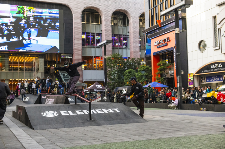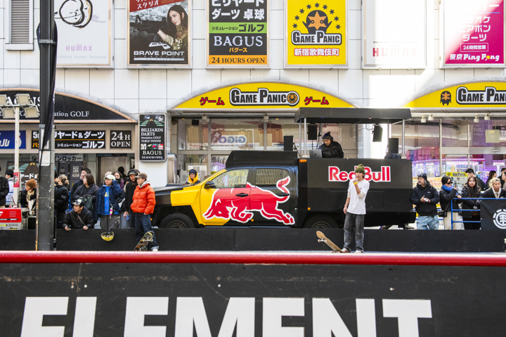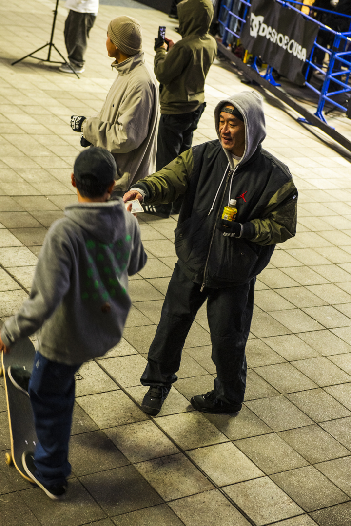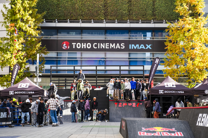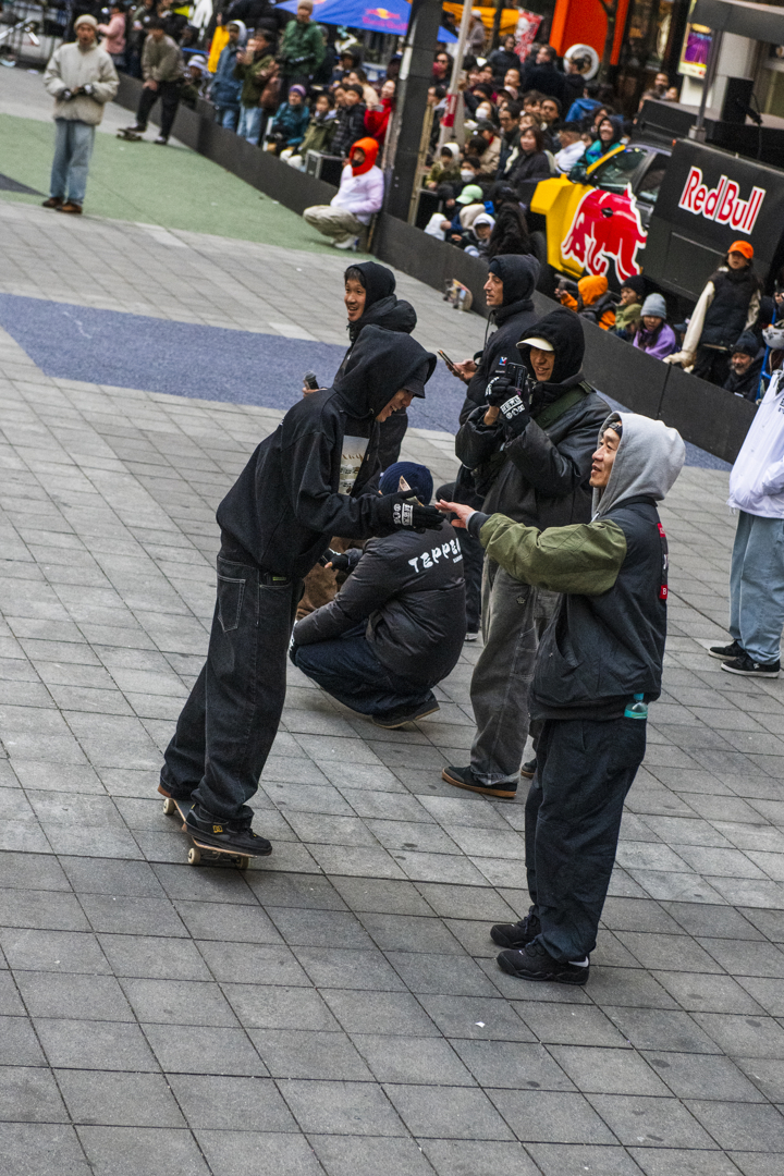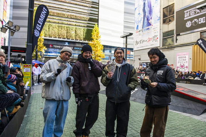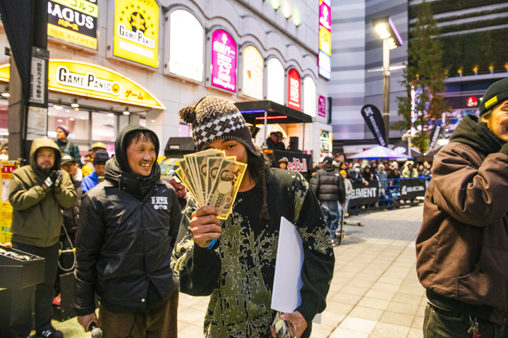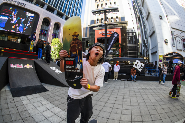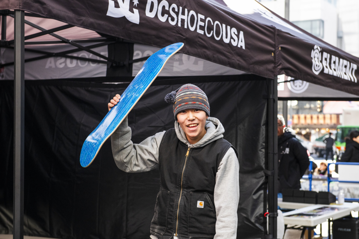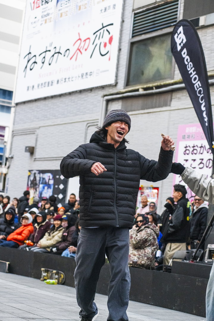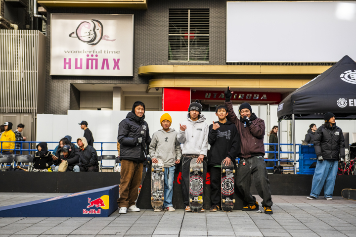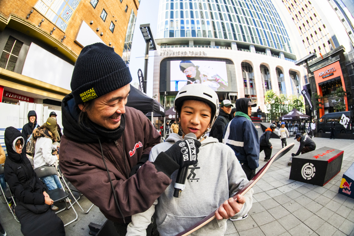 DCとElementによるスケートの祭典TEPPENが12月14日(土)に新宿・歌舞伎町で開催された。会場は行き場を失った通称「トー横キッズ」がかつてたむろしていた歌舞伎町シネシティ広場。大阪とSNS、そして当日の予選を勝ち抜いた一般スケーター、さらに豪華な招待スケーターによって繰り広げられるバトルはStage 01〜03。バンクとレッジを組み合わせたStage01では柿谷季輝がウォーリーでセクションを全越えしてMVPを獲得。続いてステア、バンク、レールから成るStage 02ではバンクtoバンクでのキックフリップバック3を決めた佐々木音憧、さらにレールでSs 50-50のバンクインを決めた瀬尻 稜の2名がMVP。バンクとクオーターパイプでトップのレッジを攻める最終ステージではT4がバックテールストールからのBs180アウトでMVP。会場のテンションもMAXに達したタイミングでコースを手掛けたMBM Parkbuildersの木村会長が登場し、Fsロケットブラントを決めた鎧 碧斗がMBM賞をゲット。本戦後は一般参加のベストトリックが男女でそれぞれ行われ、第3回目のTEPPENが終了。晴天ながらもビルの谷間ということで日差しがなく、冷たいビル風が吹きつける環境ながらも繰り広げられたセッションは激アツ。また来年の開催をお楽しみに!!
