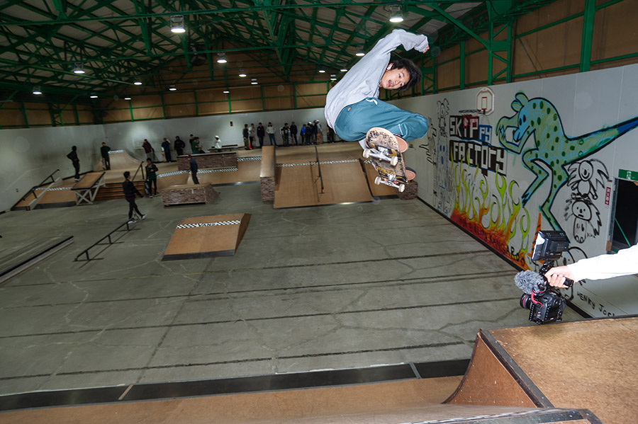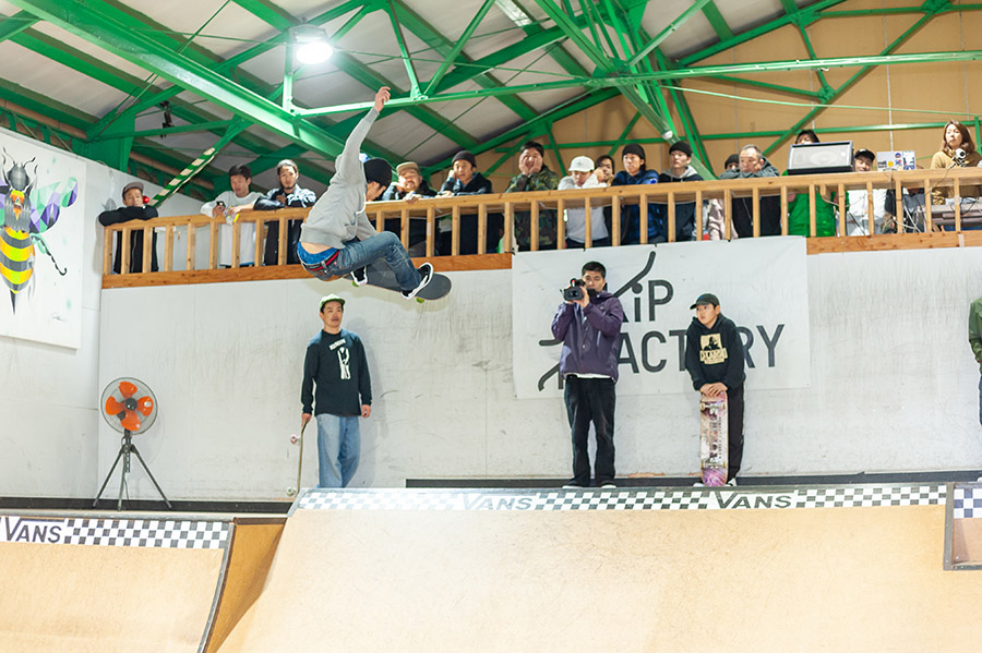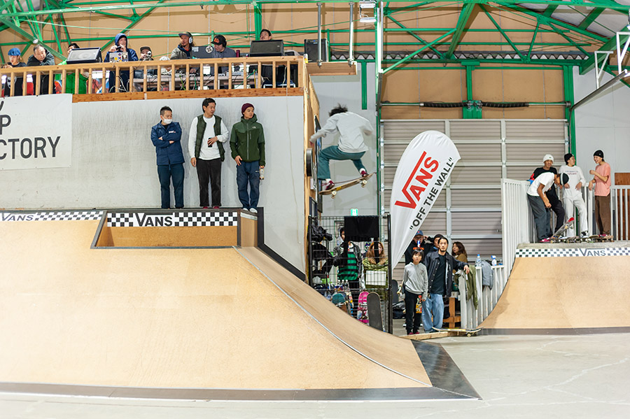 会場のSkip Factoryにはライダーの座間翔吾や守重琳央をはじめ、40名ほどの招待スケーターが集結。Waffle ControlというVansの最新ソールテクノロジーを搭載した同モデルのパフォーマンスをそれぞれが滑りで表現。