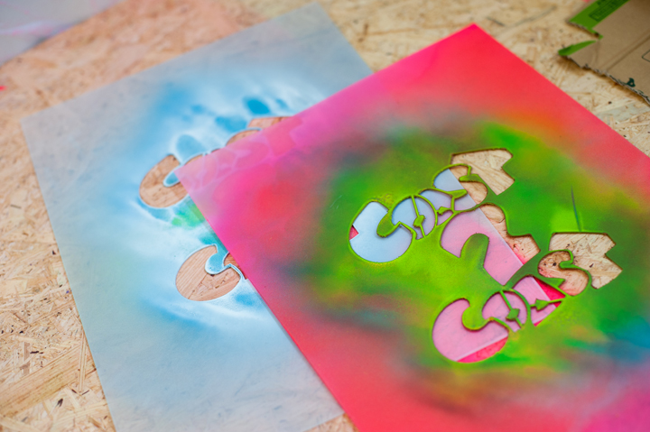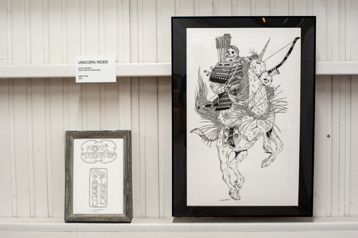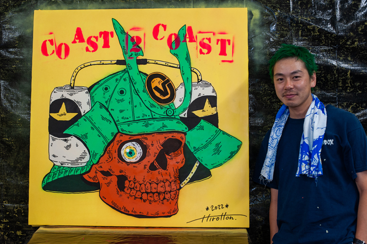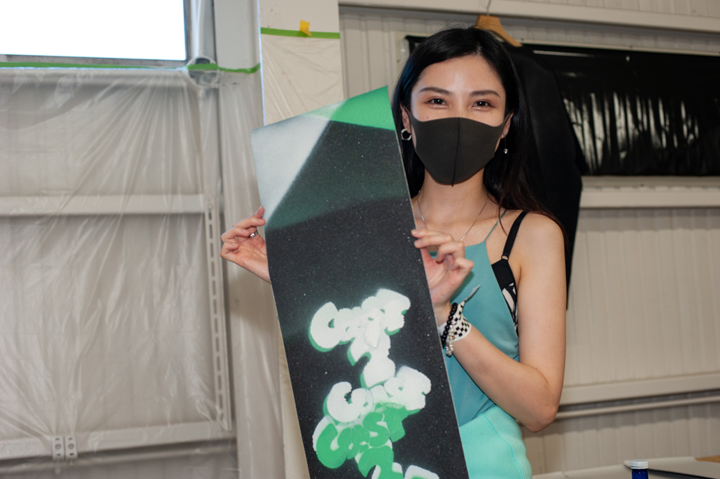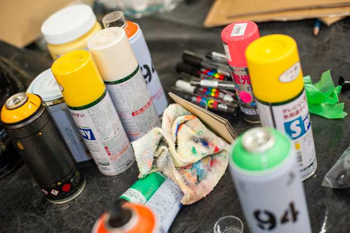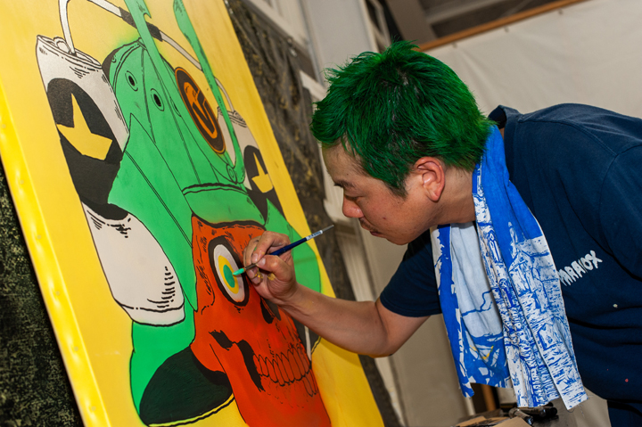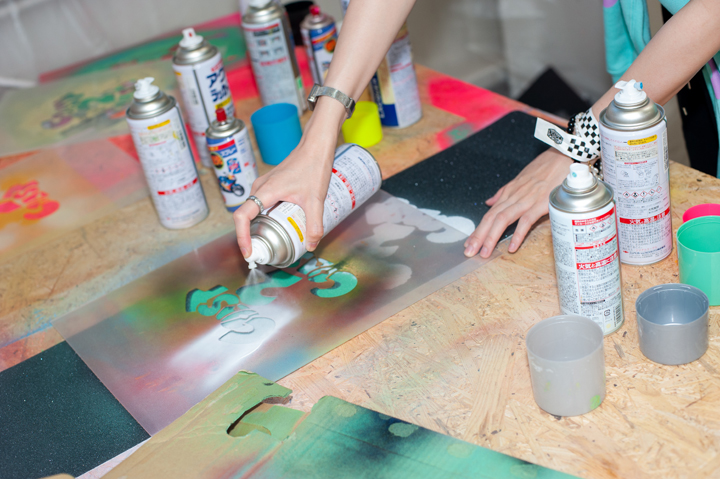 会場ではHirottonのライブペインティングに加え、ステンシルのワークショップ、手塚まみの1stプロデッキの原画や沖縄ツアー時の写真展示など見どころ盛りだくさん。