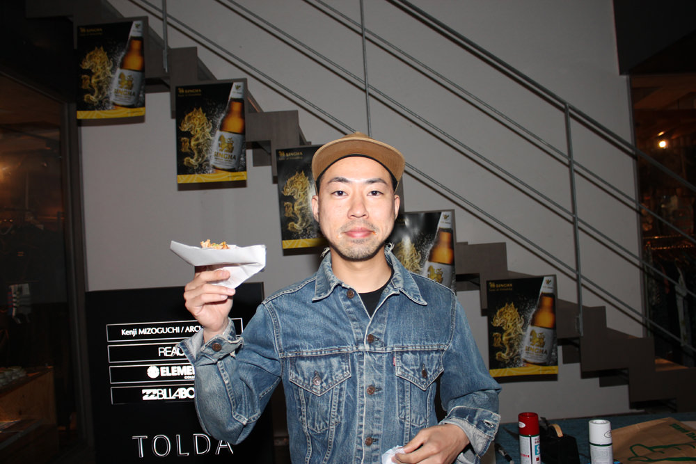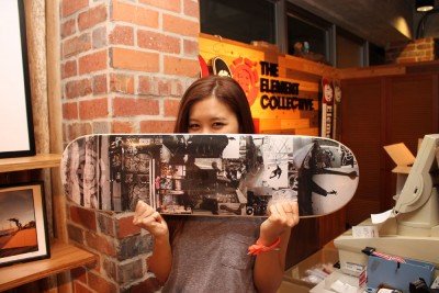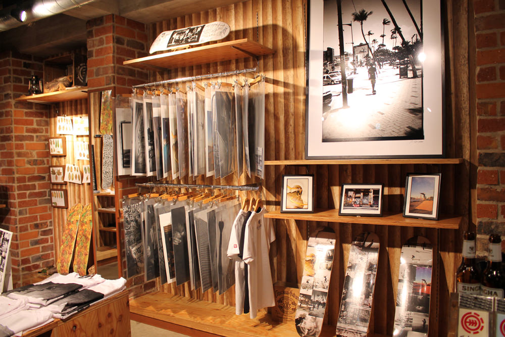 そしてVans試写会場のお隣のElement Store 原宿では、Element初となる日本人アーティスト(Joji Shimamoto、Koji Yamaguchi)とのコラボレーションアイテムのリリースパーティが開催。Element Store 原宿の店内の一角には両アーティストが手がけたコラボアイテムが展示され、写真などの販売も行われていたほか、Elementジャパンチームの台湾ツアー動画もプロジェクターで映し出されていた。