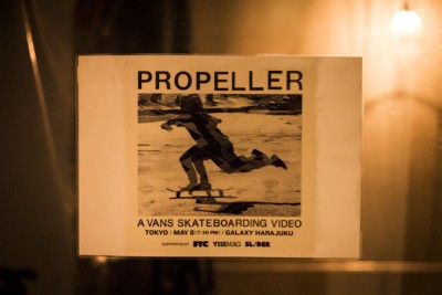 GWのウキウキ気分も抜け切らない5月8日(金)の晩に、GALAXY HARAJUKUにてVans『PROPELLER』の試写会が行われた。限定150名の試写会場はスケーターはもちろん、アパレル関係者や業界人で溢れ、トップスケートシューズブランドVansの人気と実力を物語っていた。