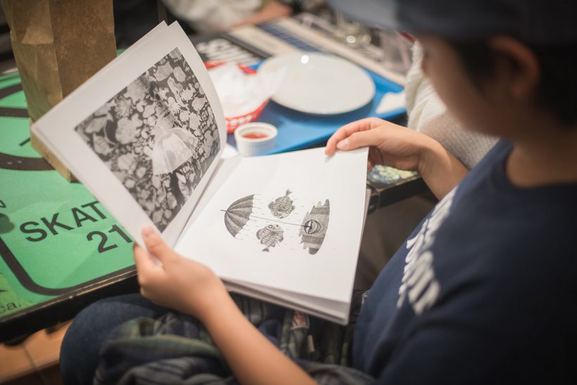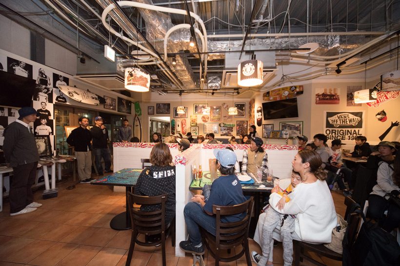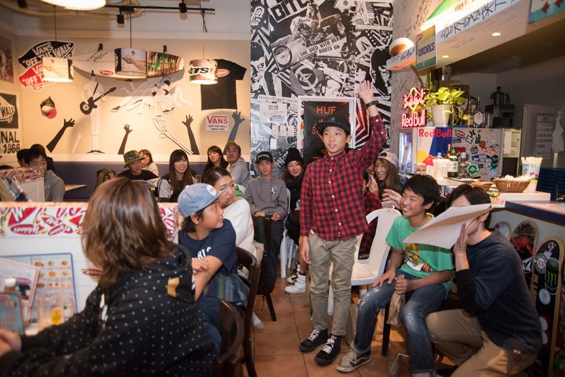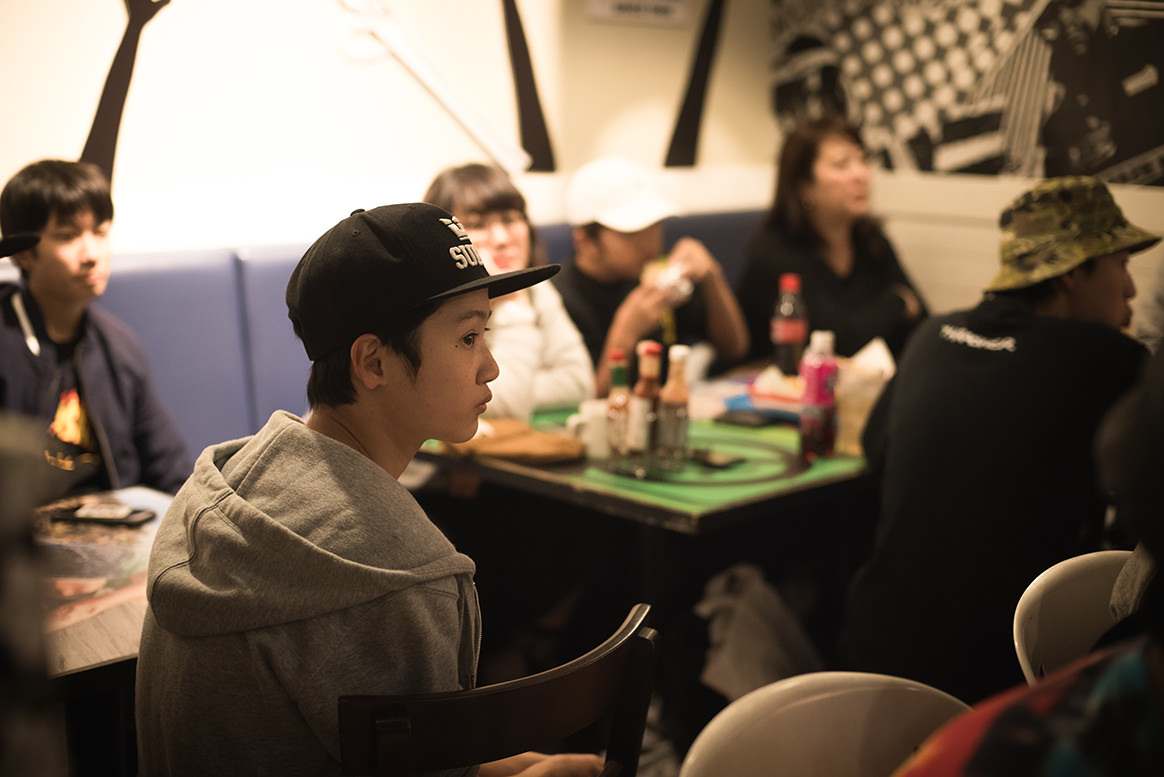 スケートパークでのセッションの後は、国内随一の味と人気を誇るWahoo'sにて美味しいタコス&ブリトーを食べ、講師の手がけたアート作品や映像をチェックしながらのワークショップ&トークセッション。プロスケーターやスケート業界で働くことを目指す中高生たちにとっては目から鱗が落ちるような貴重な体験となったようだ。