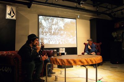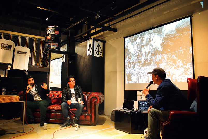 スケート、スノー、サーフシーンで活躍するフォトグラファーとVolcomによるコラボレーション、Spiritual Intoxication Featured Photographer Tee Seriesのリリースパーティが4月10日(金)にVolcom Store Tokyoにて行われた。当日はスケート(嶋本丈士)、スノー(ニール・ハートマン)、サーフ(吉田憲右)のそれぞれの撮影を担当したフォトグラファーによるトークショーが行われ、多くの来場者がプロのフォトグラファーならではの話に夢中になっていた。スケート、スノー、サーフ、そしてアートというVolcomのエッセンスが凝縮されたアツい一夜となった。