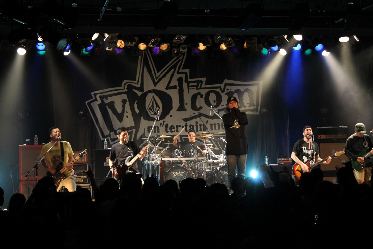 試写会もさすがVolcomだけにショーアップされたもので、Volcomとつながりの深いFactやAbnormalsといったバンド、Silent PoetsやVan Cliffe(Elli-Rose)といった錚々たるメンバーがイベントを盛り上げる。