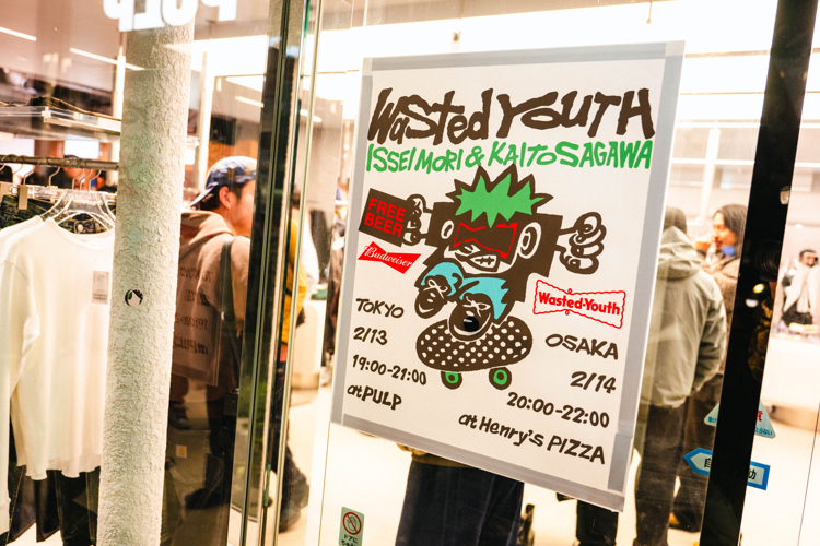 The Tokyo premiere of the Issei Mori & Kaito Sagawa part by Wasted Youth was held on Friday, February 13 at PULP in Shibuya. With the release of collaboration items from Wasted Youth × CarService taking place the same day, a large crowd gathered, making it an electrifying night. The video is set to continue filming and is scheduled for release this fall.