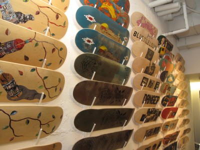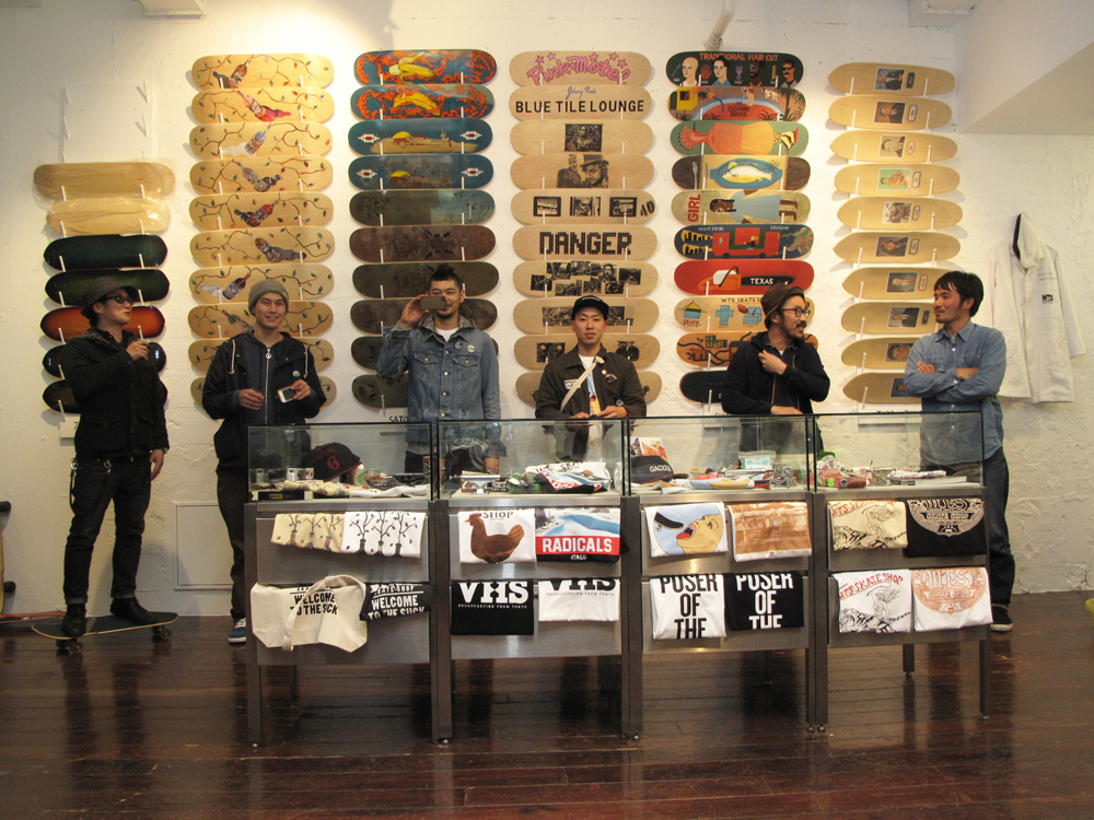 今回のエキシビジョンはBEAMS T HARAJUKU店内にWTS Skateshopというポップアップスケートショップを出店するというだけあって、会場の壁一面を使い7Stars Design、平野太呂、竹内俊太郎、田口 悟、山口幸士、村岡洋樹という6名のアーティストがアートワークを手がけた1点もののスケートデッキが展示・販売。