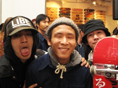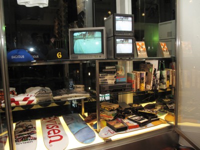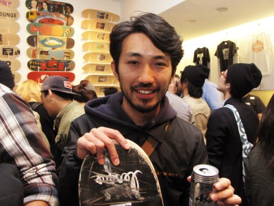 6者6様によるアートワークが施されたスケートデッキは、来場者の注目の的になっていた。