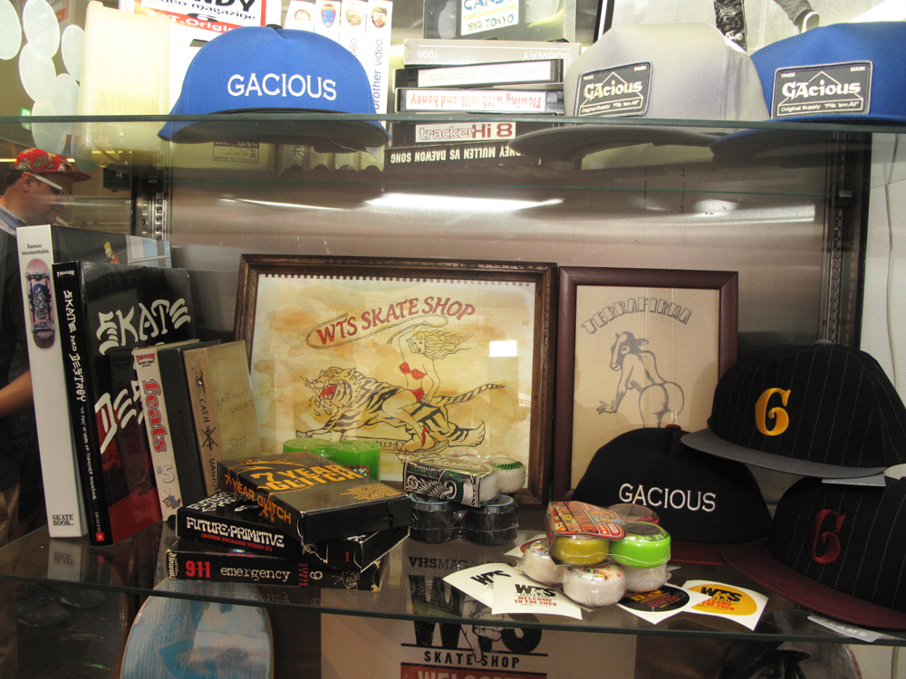 今回のエキシビジョンはBEAMS T HARAJUKU店内にWTS Skateshopというポップアップスケートショップを出店するというだけあって、会場の壁一面を使い7Stars Design、平野太呂、竹内俊太郎、田口 悟、山口幸士、村岡洋樹という6名のアーティストがアートワークを手がけた1点もののスケートデッキが展示・販売。