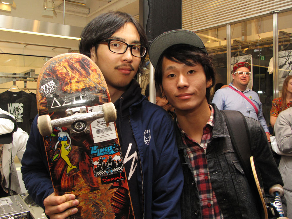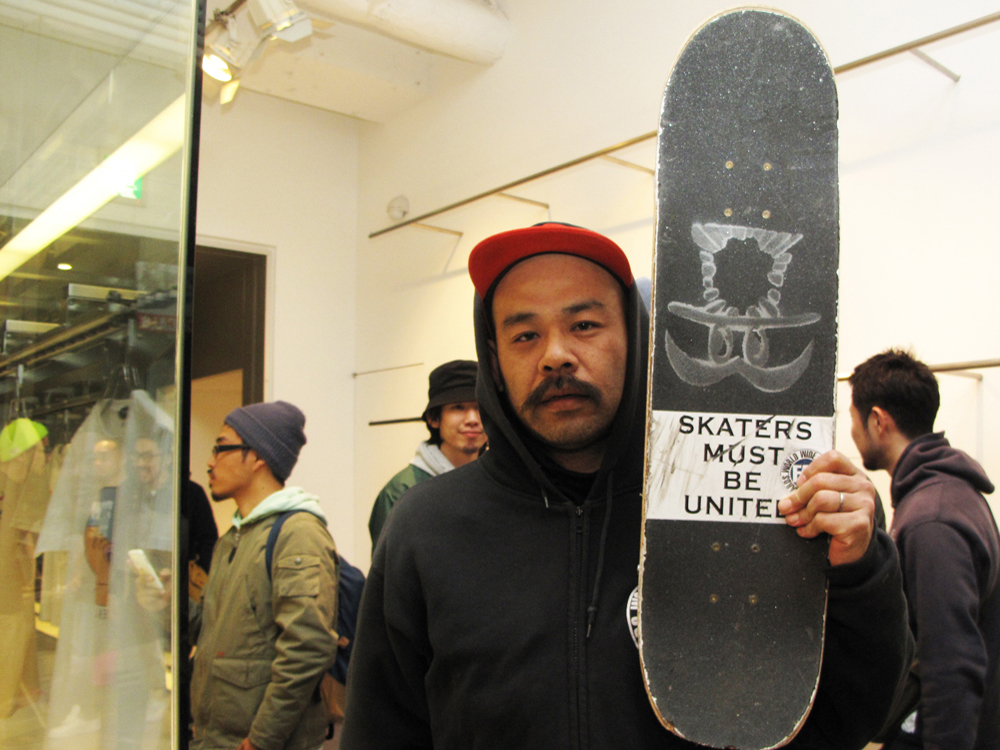6者6様によるアートワークが施されたスケートデッキは、来場者の注目の的になっていた。