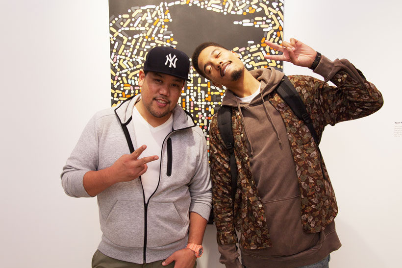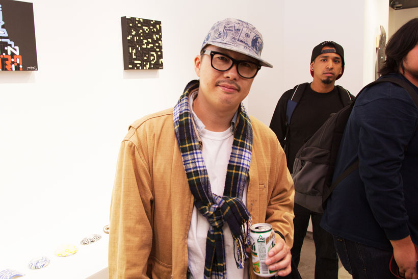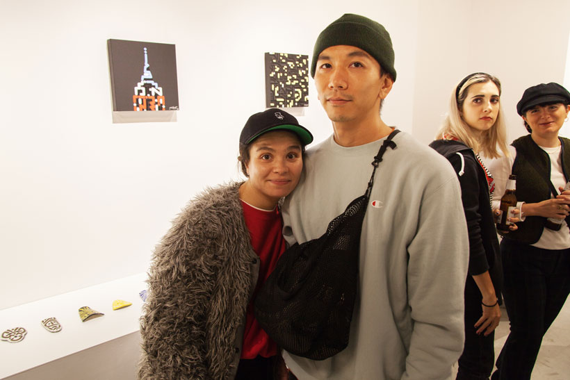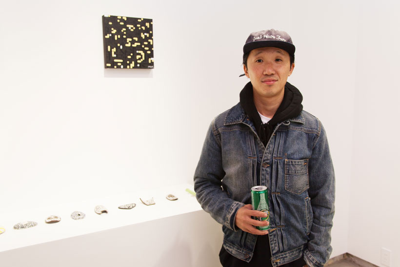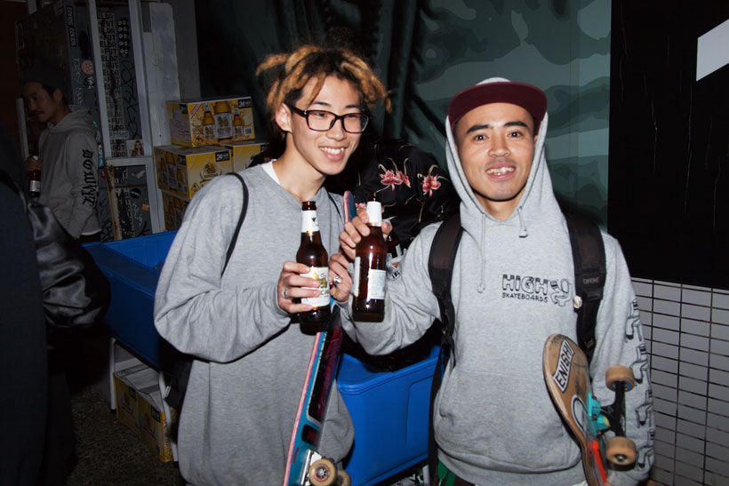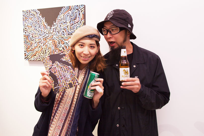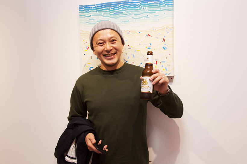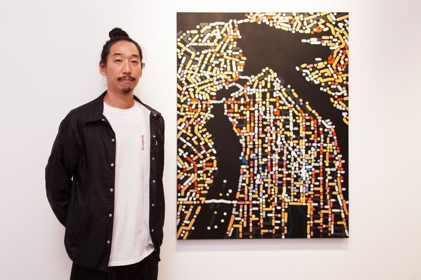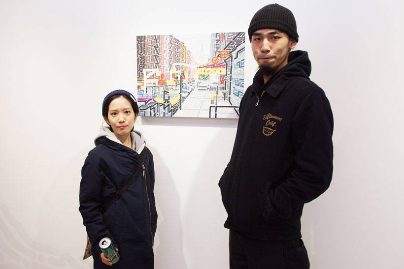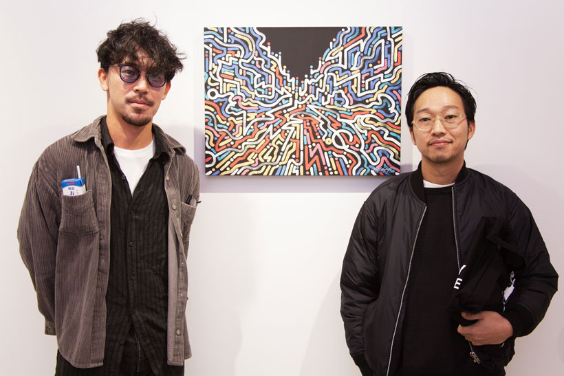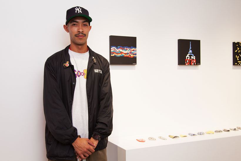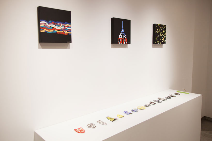 カラフルな点や線を用いてフリーハンドで描かれる風景を中心とした作品の数々を展示。スケートをバックボーンに持つアーティストだけに多くのスケーターが来場し盛り上がりを見せていた。