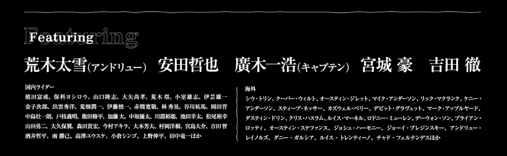 たまたまトレーラーを見たのですが、独特な空気感にヤラれ、「日本から世界へ」の思いを感じ、この作品にぜひ参加したいと思い、それまであまり絡みのなかった制作者、高橋大介にいきなり連絡を取り、徐々に一緒に動くようになりました。大ちゃんは作品に対する、自分はパートに対するイメージが強くあり、できる限りお互いが納得のいくものになるよう話し合い、撮影を重ね、形になっていったパートです。世界初(恐らく)アリマス。