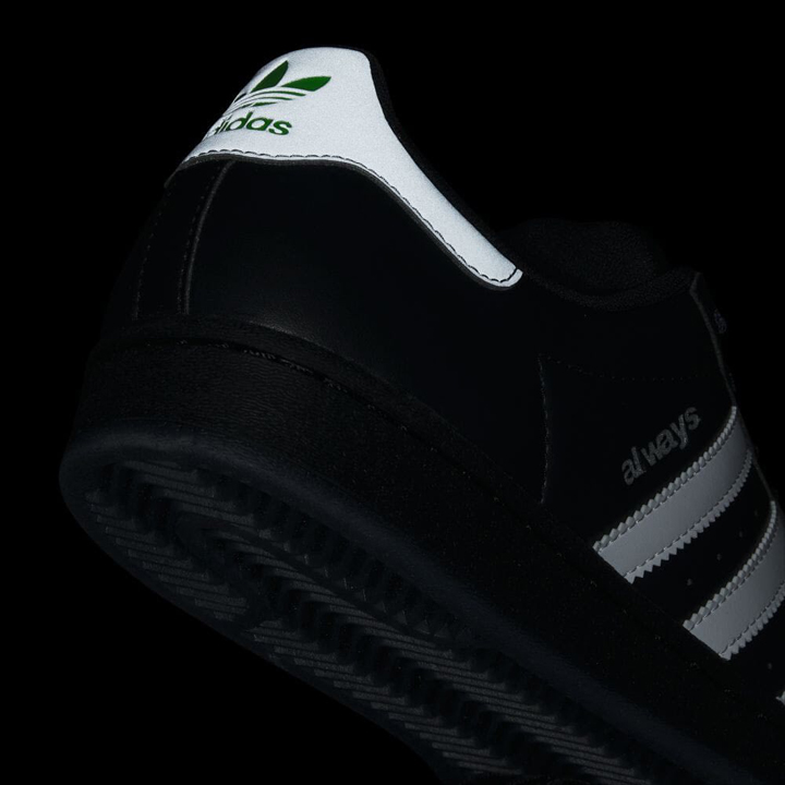 アウトソールにはニュージーランドと「仲間には愛していると伝えよう」というメッセージを配置。合成皮革アッパーにはリフレクターを採用。コミュニティや仲間との絆を大切にする、色鮮やかで遊び心に満ちたデザイン。Superstar ADV × Always ¥16,500