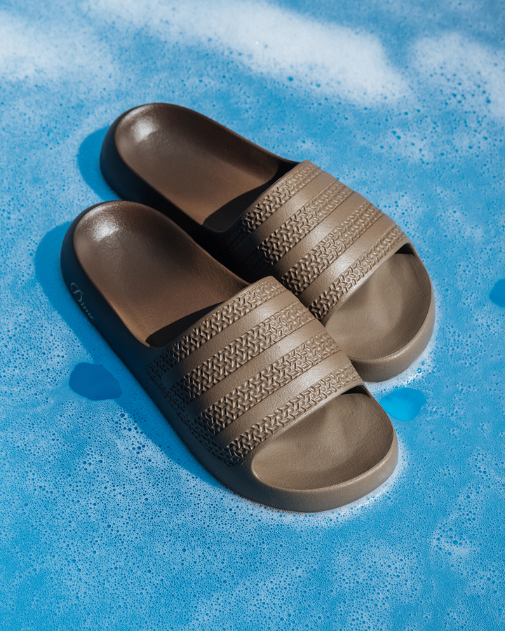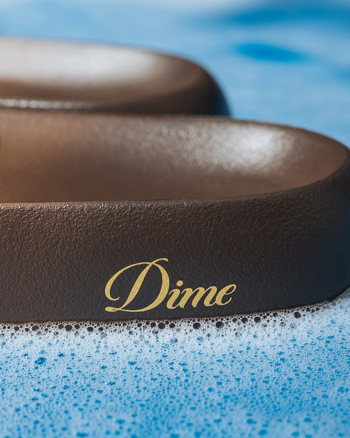 アイコニックなシルエットを斬新なフォルムにアップデート。合成アッパーと合成ライニングが足を快適に包むサンダルの足裏には、どんな路面でも滑りにくいグリップ力を発揮する合成アウトソールを採用。Dime Ayoon Slides 各色ともに¥9,900