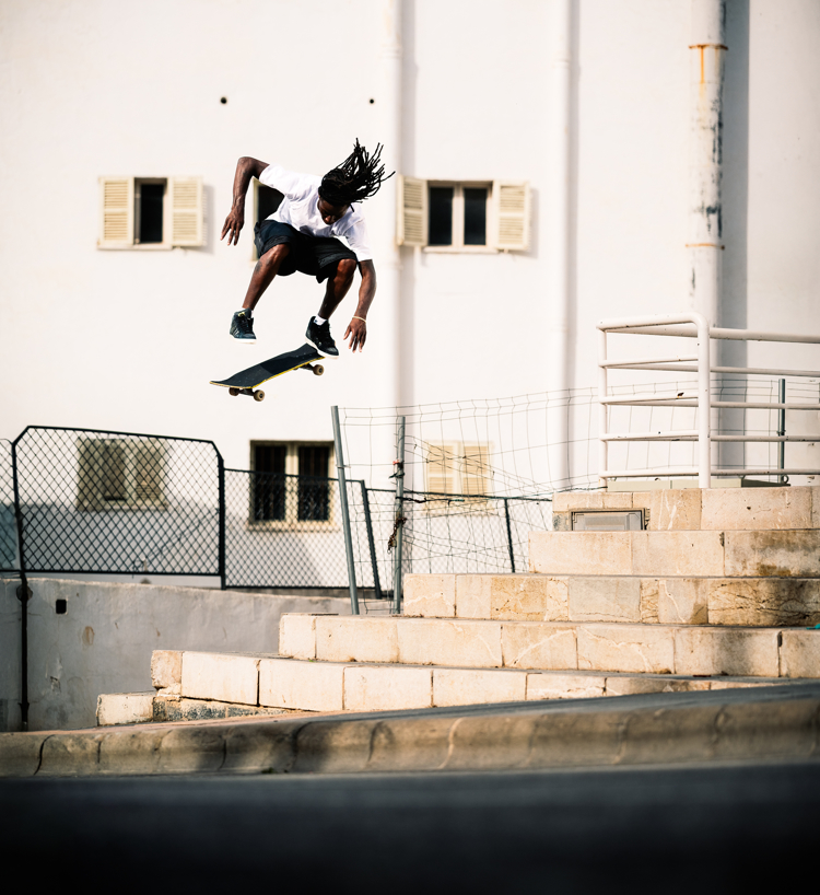 光に当たる度に繊細な輝きを放つ素材をストライプスに採用し、シンプルななかにもラグジュアリーな印象を添える。チョークホワイトのソールまわりが全体を引き締め、クラシックでありながらも新鮮なバランスを実現。ケイダーらしい遊び心と上品さが共存する、ストリートにも映えるモダンクラシック。Superskate Kader ¥17,600