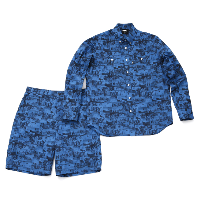 ・スケート史を語る上で外すことができない有名な写真の数々をコラージュしたボタンダウンシャツ Allover B.D Shirt ¥17,200、シャツとセットアップで着用したいショーツ Allover Shorts ¥15,120