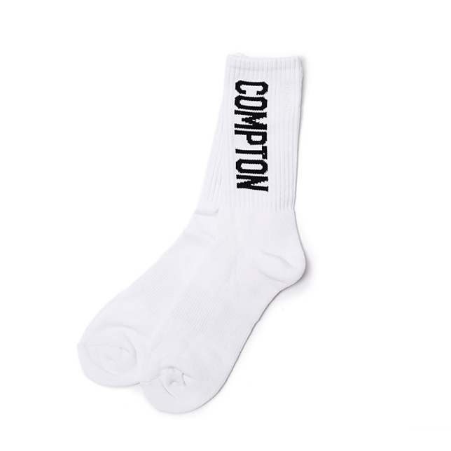 ・こちらもComptonの文字を織りで表現したソックス。ヒザ下丈のパンツと合わせてアピールしたいアイテム。¥2,160