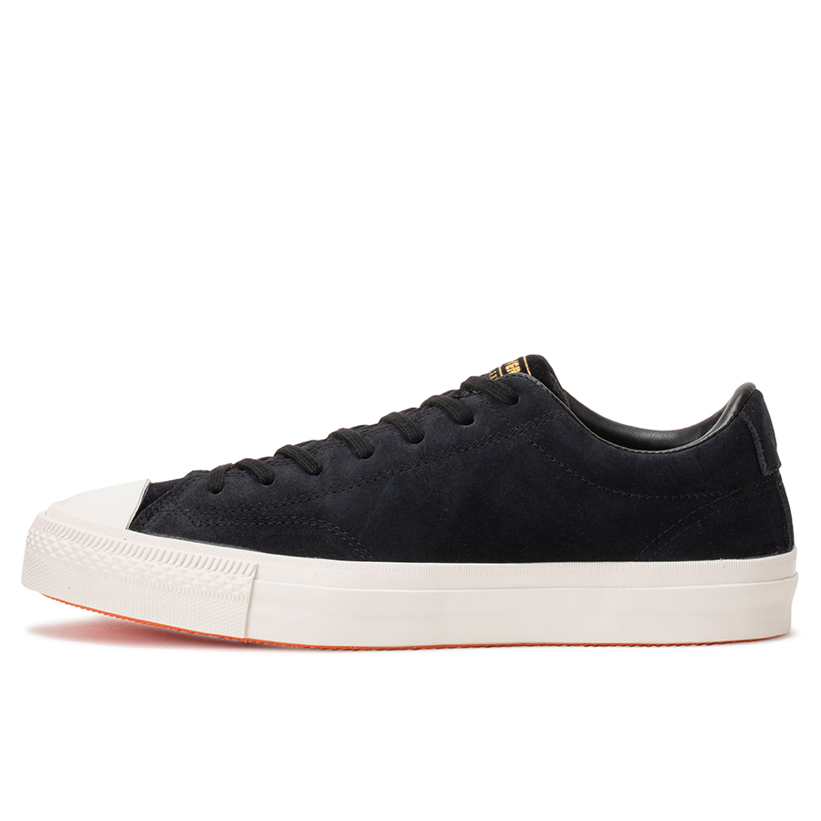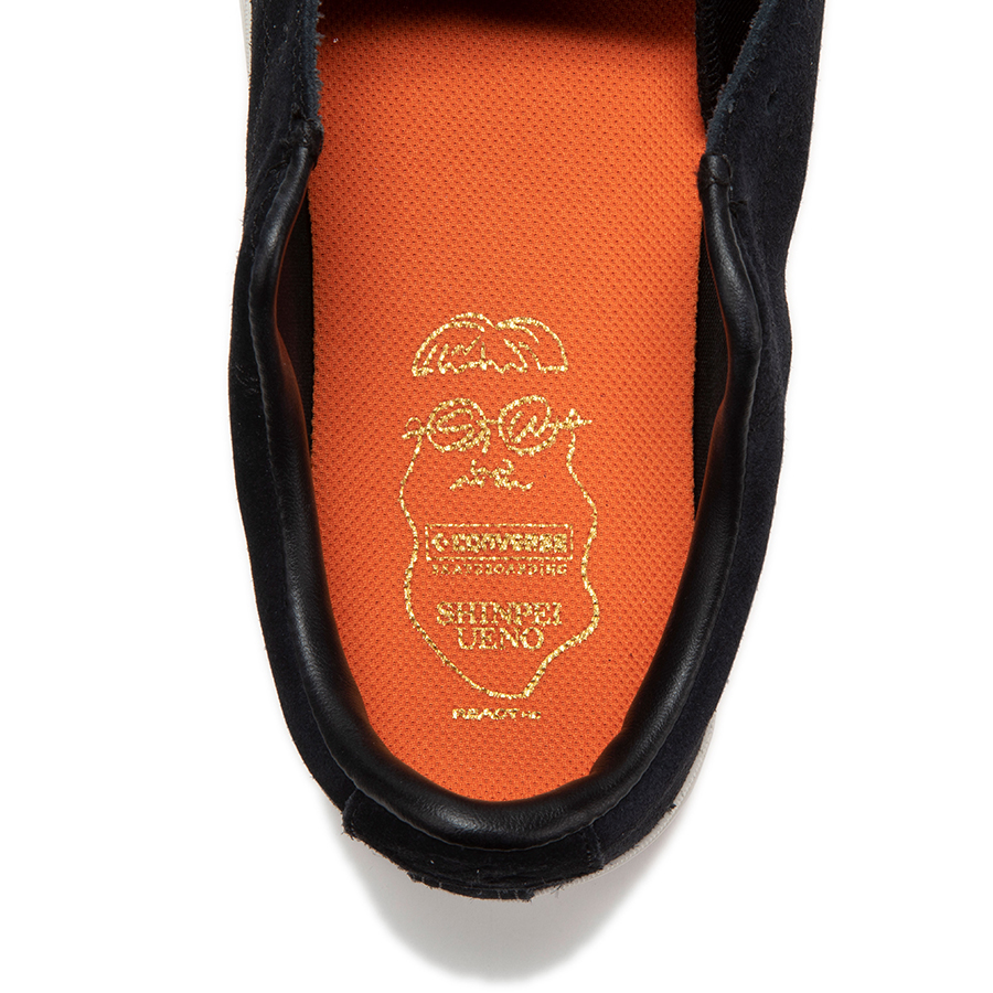 +シリーズから、上野伸平シグネチャーモデルが登場。ハトメやハトメ飾りを排除し、シューレースチップやタンのロゴにはゴールドのアクセントをプラス。アウトソールラバーの配合調整により、柔軟性とボードコントロールが、ベルベットのタンに内蔵したフォームによってフィット感がそれぞれ向上。すっきりとした佇まいでありながらも、遊び⼼あるデザイン性とスケーティングに適した機能性を兼ね備えたアイテム。BREAKSTAR SK SHINPEI UENO OX+ Black ¥14,300