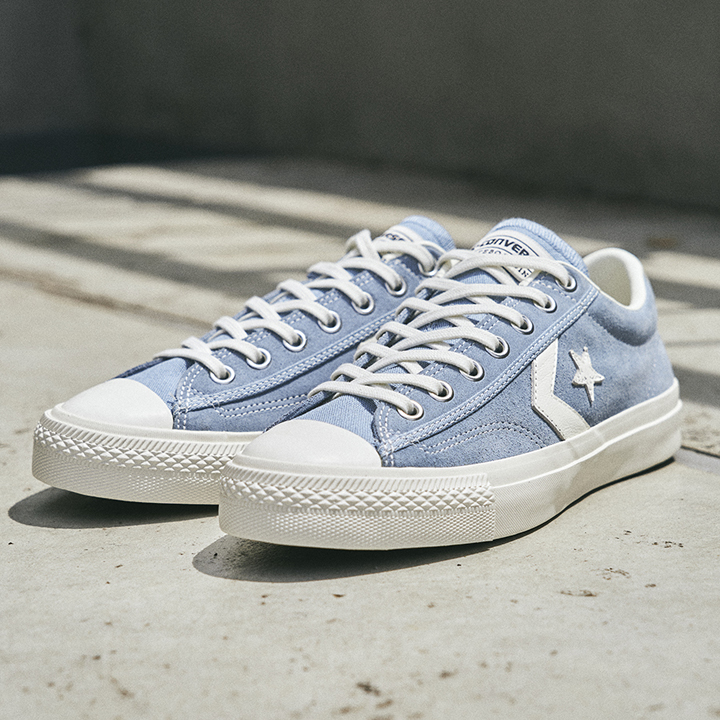 アーカイブのALL STAR IIをスケート仕様にアップデート。生成りのテープやシューレース、光沢のあるハトメを採用し、クラシックな外観を追求。アッパーに丈夫なスエード、タンに柔軟なキャンバスを使用。摩耗を軽減する二重のラバーテープや滑りにくい素材をライナーに用いるなど、スケートのための工夫が随所に施されている。足元を明るくしてくれるFog BlueとベーシックなBlackの2色展開。