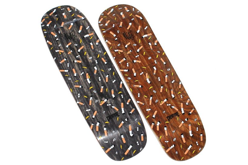 タバコにピル、そしてクロワッサンに似た何だかわからない身体に悪そうな物体がボード全面に散りばめられております。