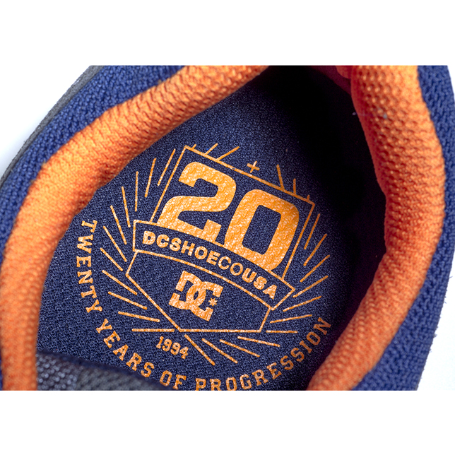 ・創業1994年、今年で設立20週年を迎えることを示すプリントがインソールに配置される。