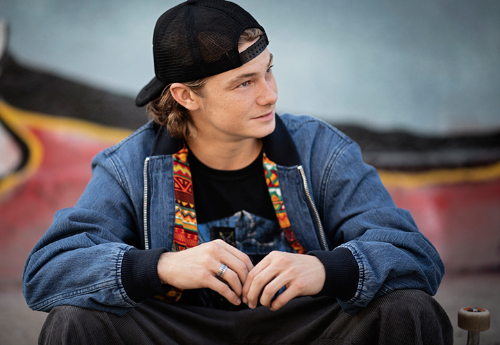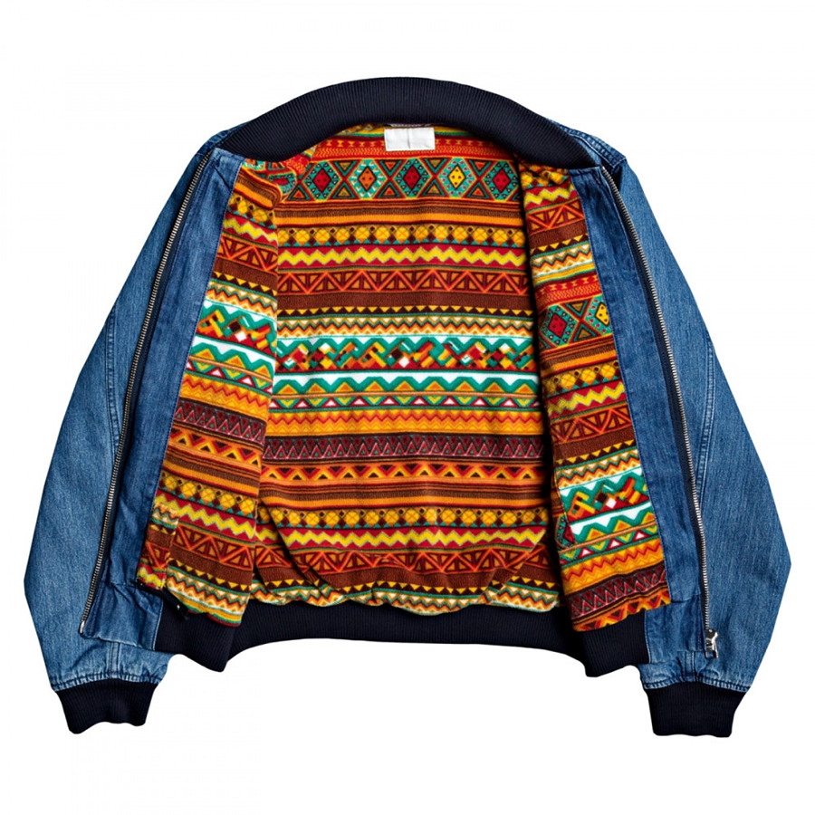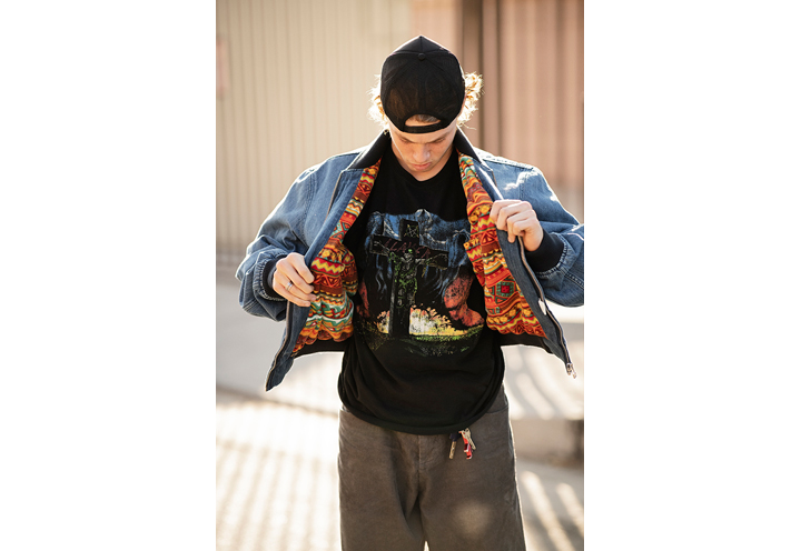 ウォッシュ加工済みのデニムを使用したボンバージャケット。裏地は今コレクションを象徴する柄。T-Funk Denim Bomber ¥20,520