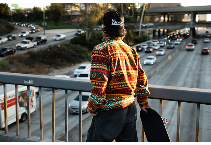 ネイティブ柄を全面に採用したハーフジップフリース。発色のキレイさもフリースならでは。着心地や保温性も抜群。T-Funk Polar Fleece ¥7,344