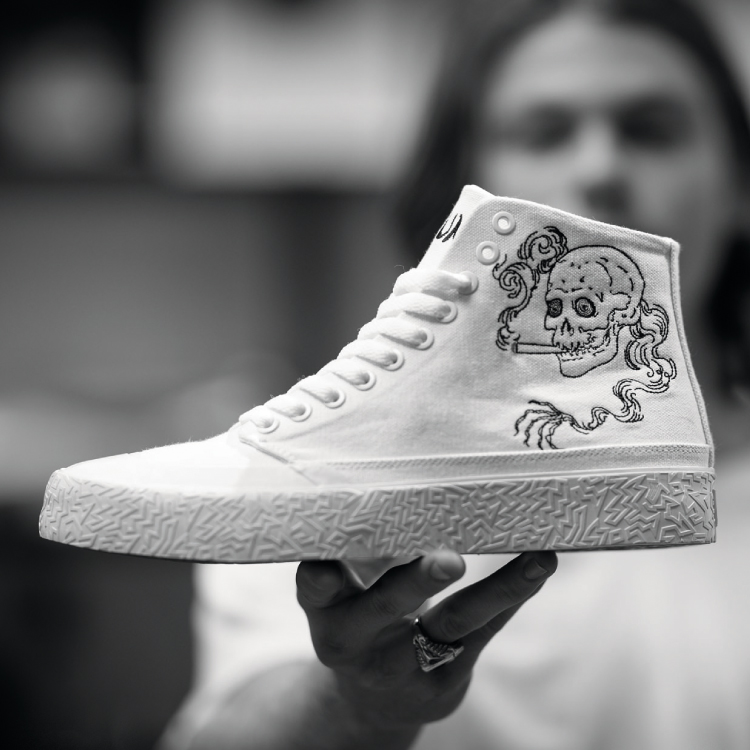 手書きのタトゥーアートをモチーフにしたグラフィックを配したシューズやTee、バンダナがリリース。