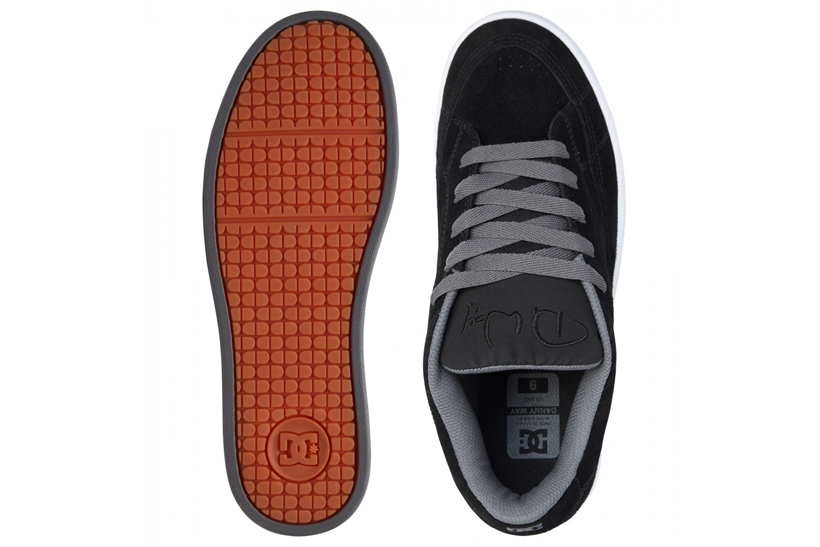 肉厚なタン部分にはDanny Wayのサインが刺しゅうで配置。ソールはDC独自のピルパターン。