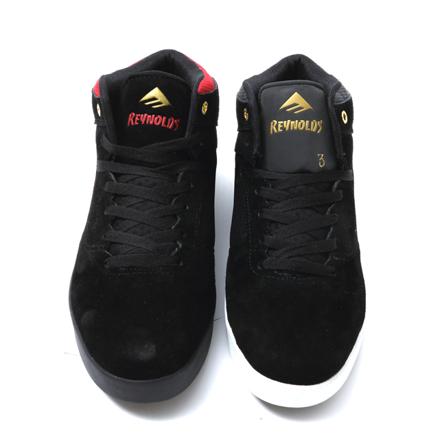 ・タンには黄金に輝くEmericaのロゴとREYNOLDSの文字。シューレースに隠れた甲部分は通気性バツグン。