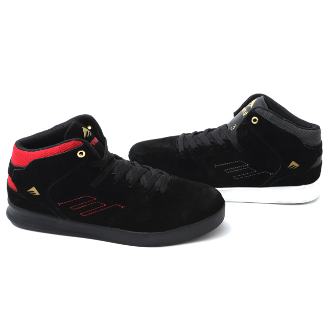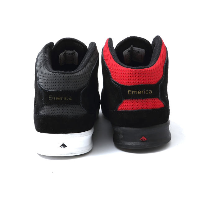 ・ブラックベースにEmericaのロゴとステッチがよく映える。インソールにはランディングの衝撃を吸収するクッショニングが搭載されている。