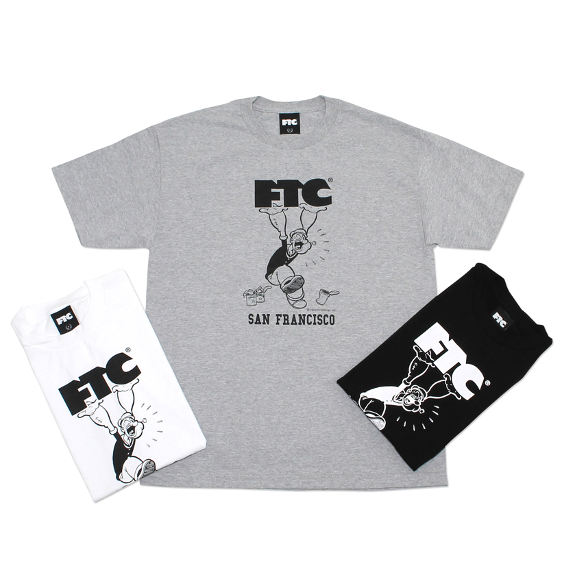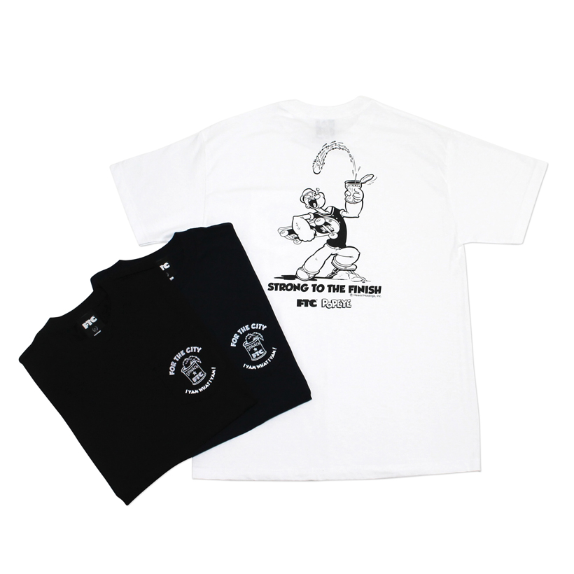 ポパイがFTCのロゴを持ち上げているデザインがインパクト抜群。FTC × POPEYE Full Snach Tee 各色すべて¥5,400