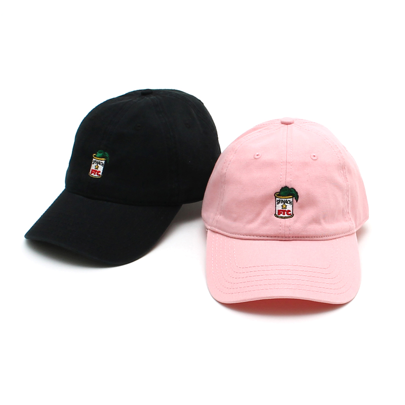 フロントにホウレンソウの缶詰の刺しゅうを施したキャップ。FTC × POPEYE Spinach 6 Panel 各色ともに¥5,400
