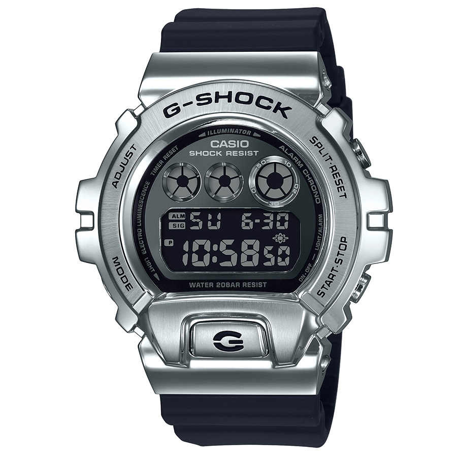 メタル素材の無骨さと美しさを両立したメタルベゼル採用モデル。GM-6900-1JF ¥25,300