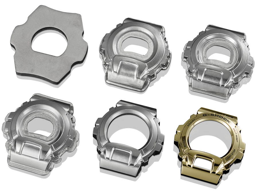 ベゼルの鍛造過程を表現。約20もの鍛造工程と数回の切削及び研磨で形状を整えている。