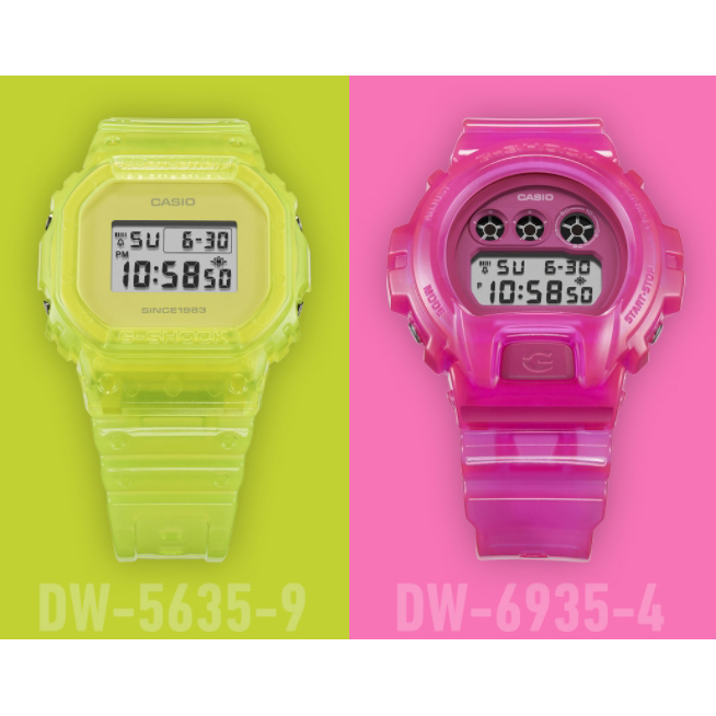 色鮮やかな蛍光スケルトン樹脂の本アイテムは、蛍光染料を2層の樹脂でコーティングし顔料化することで退色しにくくするG-SHOCKで初めての技術を採用。