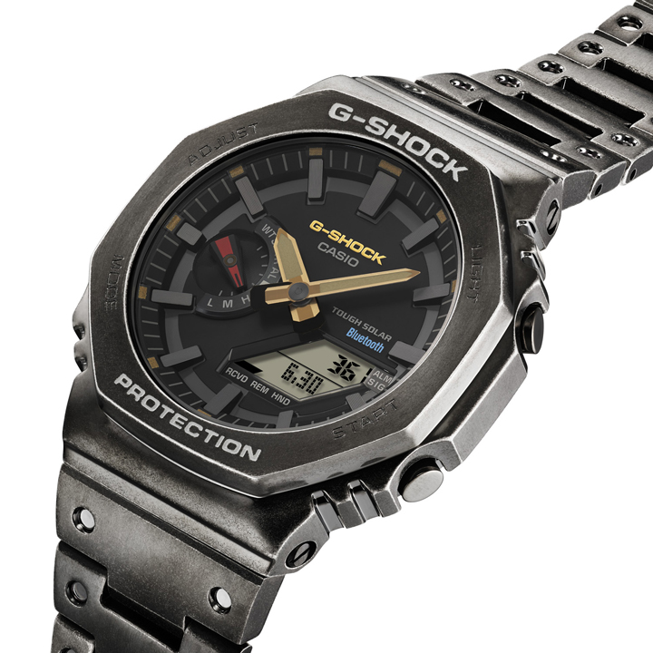 オクタゴン形状のアナログモデルGM-2100をベースにエイジド加工でブラックIPを部分的に剥離させ使い込んだ風合いを演出。