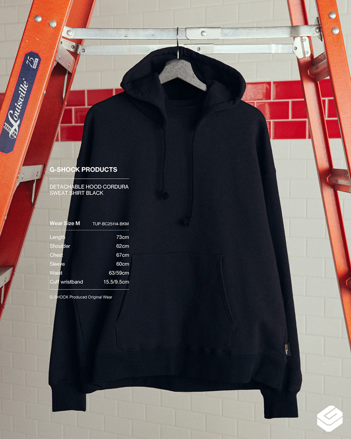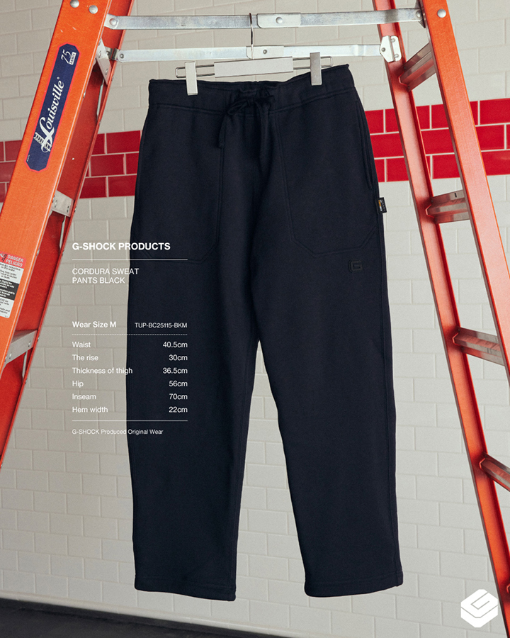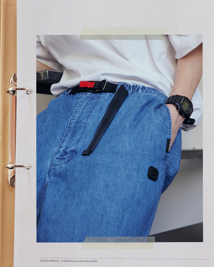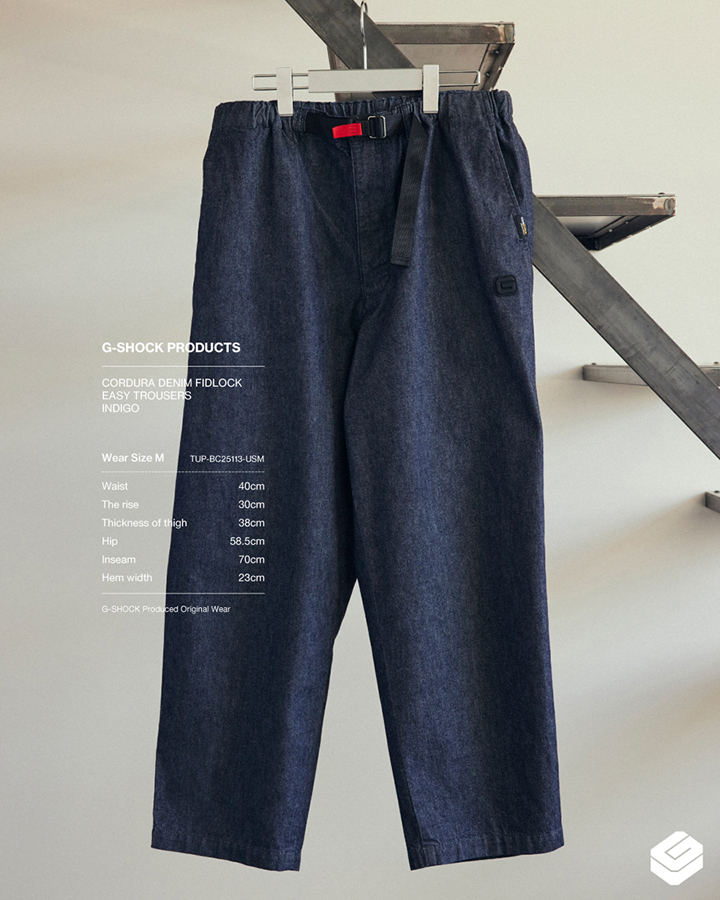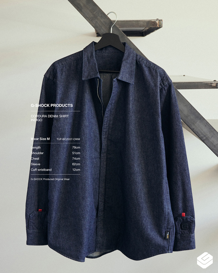 本日(3月24日)発売のアパレルは摩耗や擦り切れに強いCORDURA糸を加え織り上げたデニムやスウェット生地を採用。G-SHOCKの名にふさわしいタフな仕上がりに。