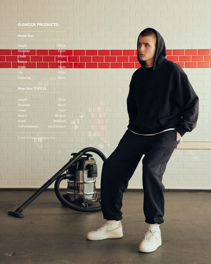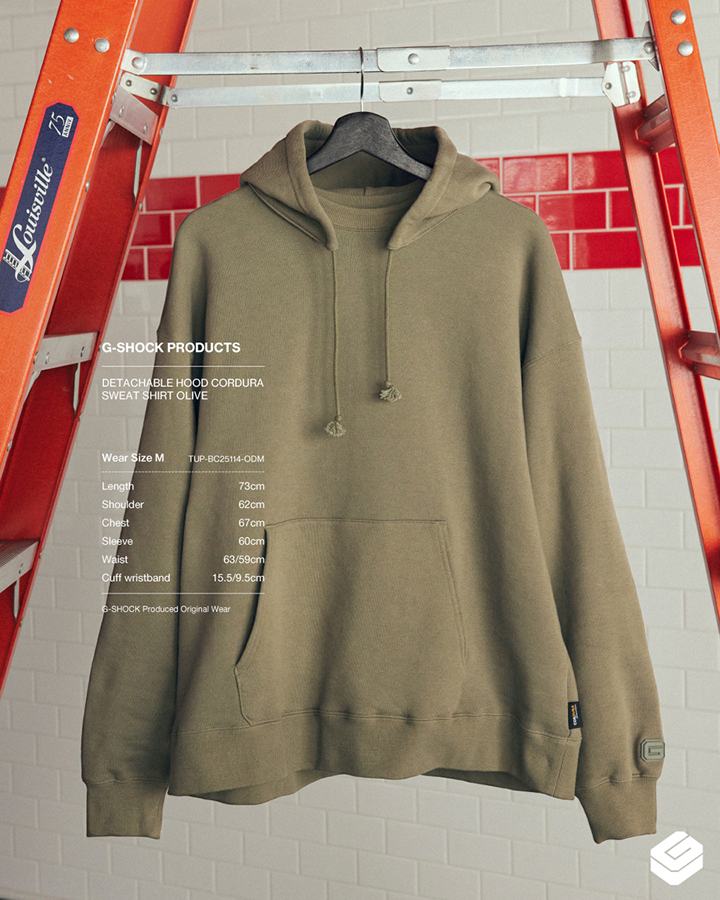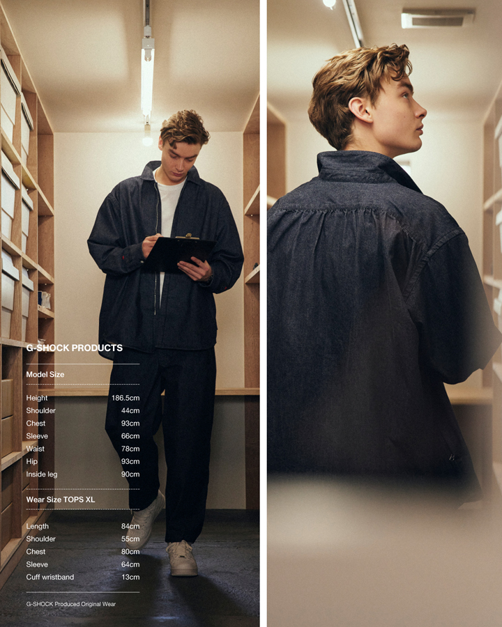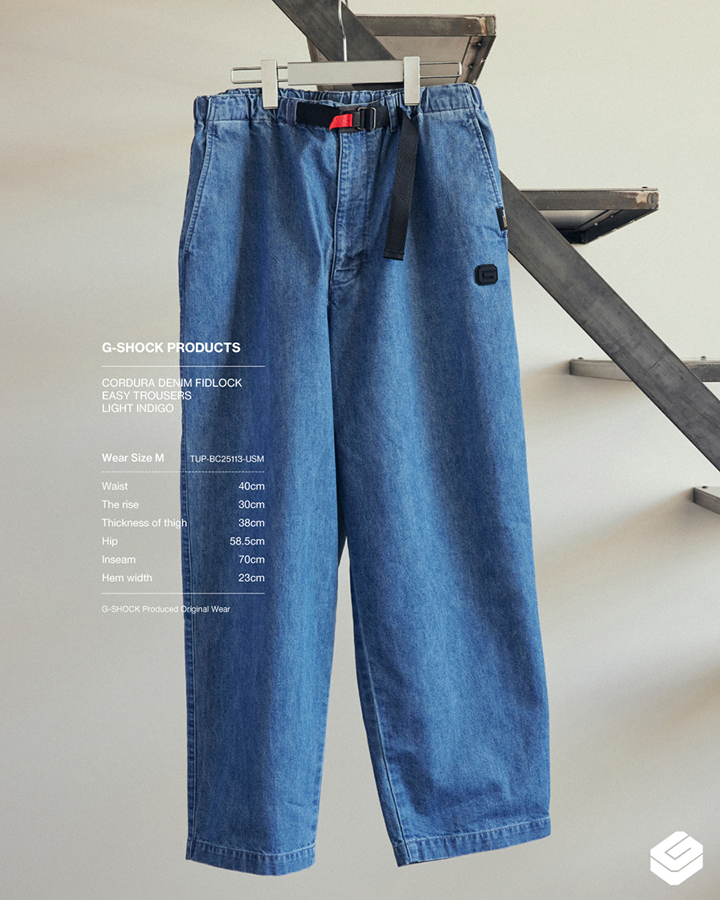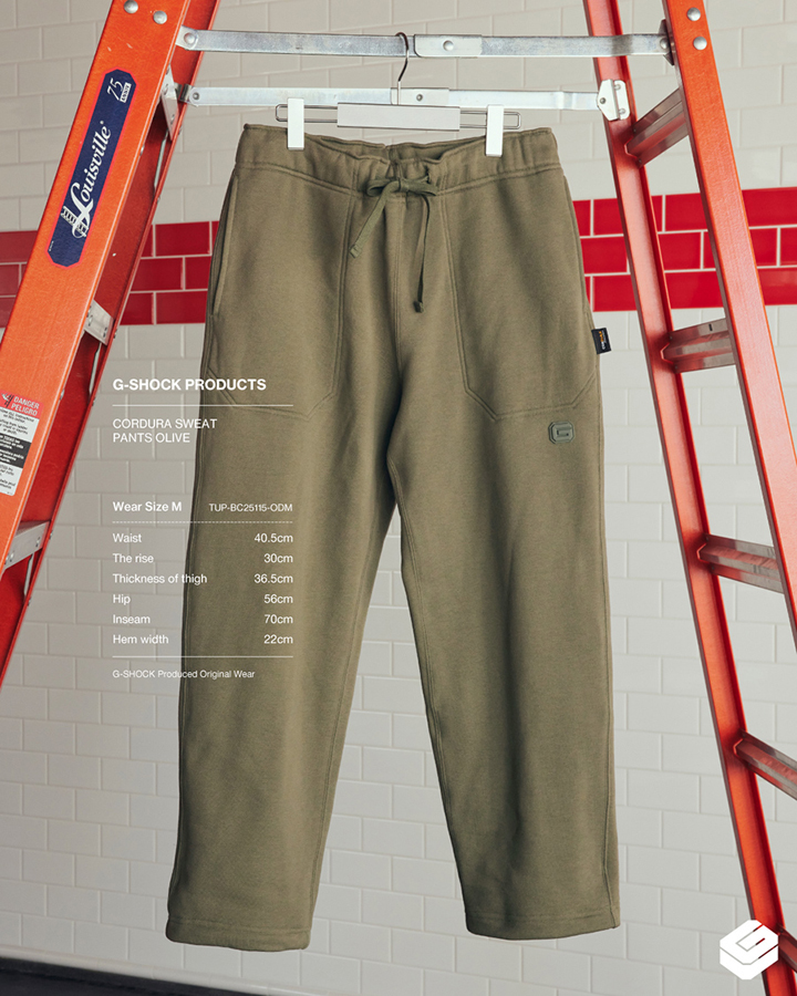 本日(3月24日)発売のアパレルは摩耗や擦り切れに強いCORDURA糸を加え織り上げたデニムやスウェット生地を採用。G-SHOCKの名にふさわしいタフな仕上がりに。
