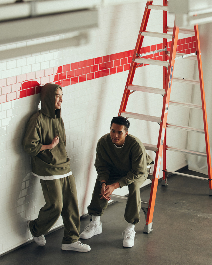 上記スウェットとセットアップで着用可能なスウェットパンツ。CORDURA SWEAT PANTS ともに¥22,000