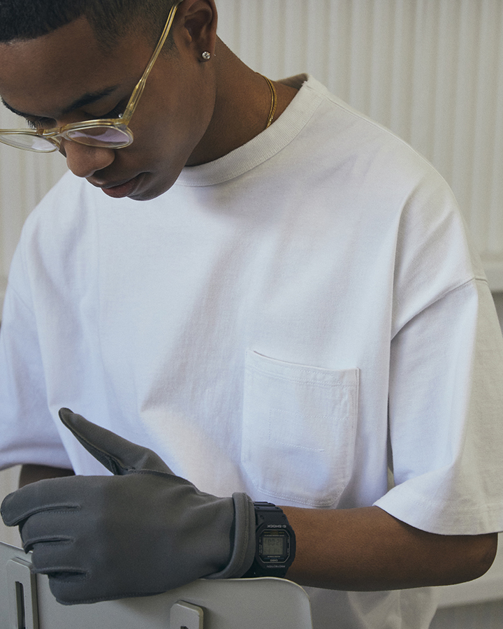 一見普通に見えるがそこはさすがG-SHOCK。CORDURA®糸を織り上げたタフなヘヴィウェイトTシャツ。CORDURA G POCKET T-SHIRTS ¥7,700(※5月18日発売)