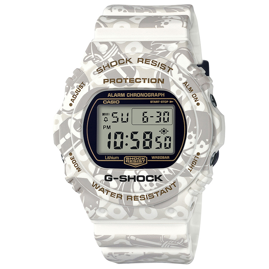 G-SHOCK初期にリリースされた丸型ベーシックタイプのDW-5700Cに白とグレーで世界観を表現した寿老人モデル。DW-5700SLG-7JR ¥18,900
